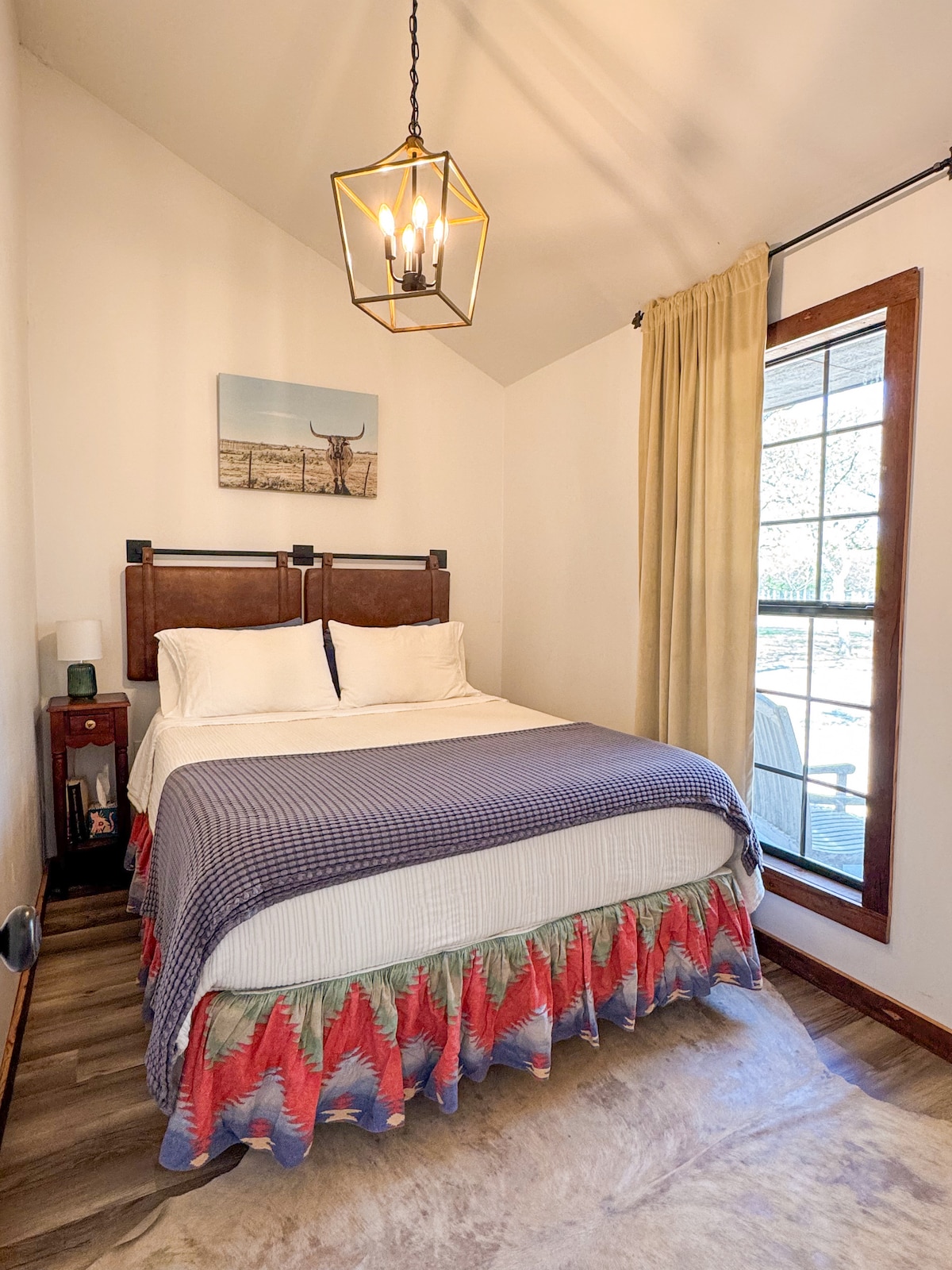 Nestled in wooded seclusion, Lonestar is our most private cabin at Ducky’s. The perfect getaway, this modern cabin lacks no comfort or convenience. Featuring a full kitchen, large walk in shower and comfy king beds. Enjoy the 20 acre property adorned with enormous pecan and live oak trees overlooking the vast scenic pasture and mini donkeys. Sip your coffee on front porch rockers and catch a glimpse of the deer. At the end of your day, wind down around the large fire pit!