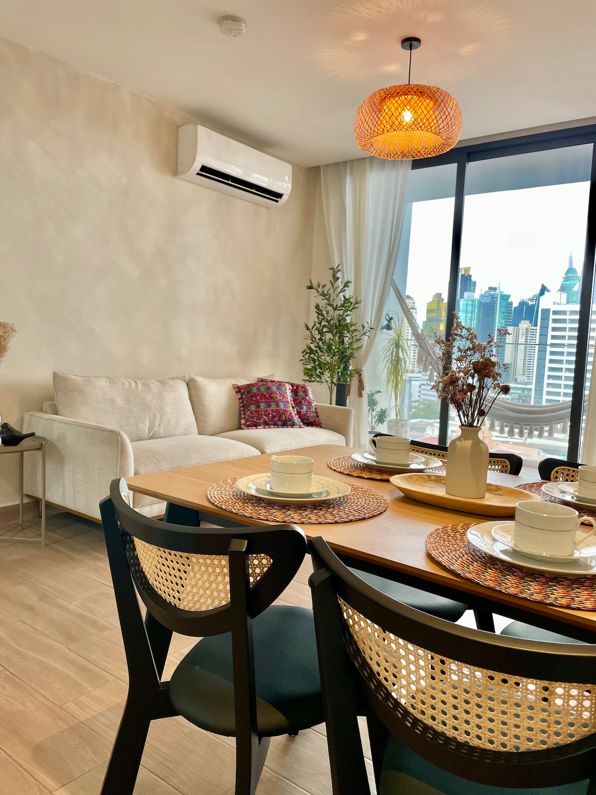 Este moderno apartamento está ubicado en el corazón del vibrante vecindario, El Cangrejo, ofreciendo fácil acceso al transporte público. Ideal tanto para viajeros de ocio como para nómadas digitales. Disfruta de internet de alta velocidad y relájate en la hamaca del balcón después de un día explorando la ciudad, ya sea que busques aventura, relajación o un espacio de trabajo productivo.