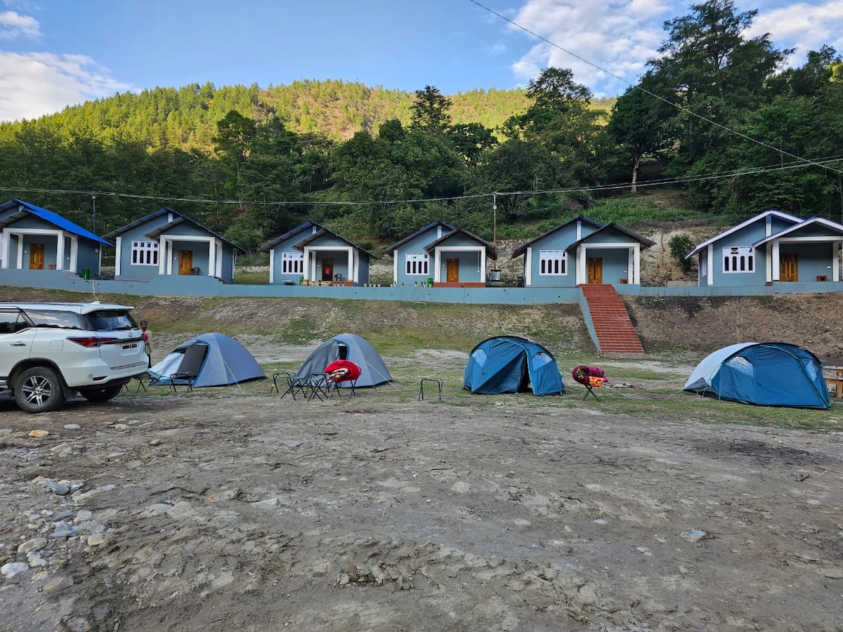 เต็นท์ป่าซาฟารีแห่งนี้อยู่สูงจากพื้นดิน 13 ฟุตเต็นท์มองเห็นวิวแม่น้ำที่สวยงามจากระเบียง เอกลักษณ์ของเต็นท์นี้คือ - มีห้องน้ำในตัวที่ไม่มีน้ำพุร้อนและวิวแม่น้ำใส ห้องพักกว้างขวางสามารถเข้าถึงได้ผ่านขั้นบันไดจากด้านข้างของเต็นท์ ห้องพักมีห้องน้ำกว้างขวางและสิ่งอำนวยความสะดวกพื้นฐาน มีกิจกรรมผจญภัยให้บริการโดยมีค่าใช้จ่ายเพิ่มเติม