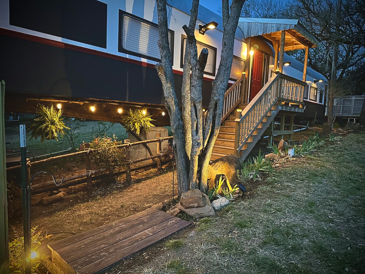 บรรยากาศที่เงียบสงบมองเห็นหุบเขาเอล์มห่างจาก Buffalo Gap เพียง 9 นาที รถรางและคาบูสที่ได้รับการปรับปรุงใหม่ทั้งหมดเชื่อมต่อกันด้วยลานด้านหลังขนาดใหญ่ที่มีวิวที่งดงามที่สุดแห่งหนึ่งในเทย์เลอร์เคาน์ตี รถรางมีขนาดใหญ่กว่าทั้ง 2 หลังและมีเตียงขนาดคิงไซส์ฝักบัวอาบน้ำห้องครัวเต็มรูปแบบและพื้นที่นั่งเล่น ห้องโดยสารมีเตียงควีนไซส์พื้นที่นั่งเล่นขนาดเล็กอ่างอาบน้ำครึ่งหนึ่งตู้เย็นขนาดเล็กและบาร์กาแฟ สมาร์ททีวีและ WI-FI ในแต่ละเครื่อง ผ่อนคลายและผ่อนคลายในสถานที่พักผ่อนที่ไม่ซ้ำใคร