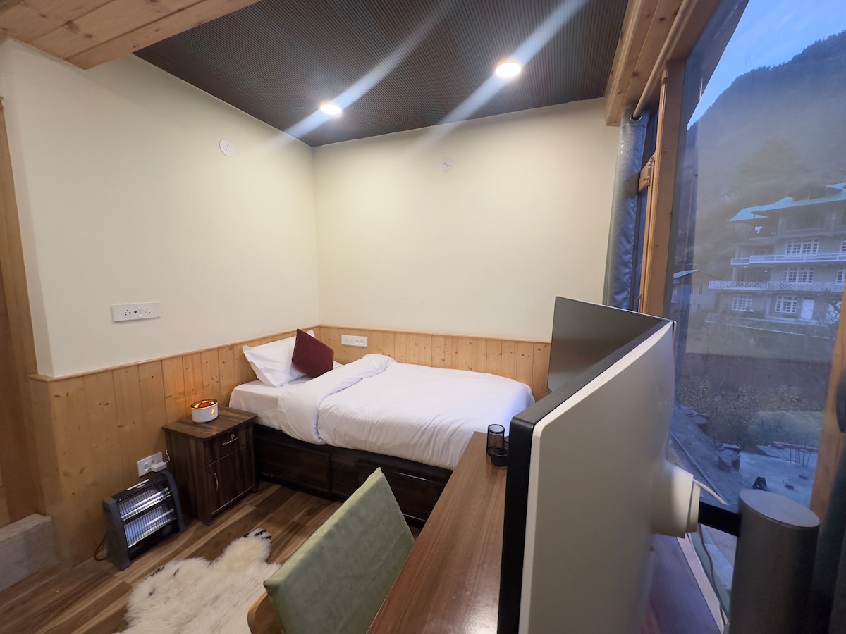 ที่พักที่เหมือนบ้านตัวเอง! ตั้งอยู่ใจกลางเทือกเขาหิมาลัยเป็นที่พักบูติคที่ไม่เหมือนใครที่เป็นบ้านที่ทุกคนฝันถึงการได้อยู่บนภูเขา ตั้งอยู่ห่างจากถนนช้อปปิ้ง 5 นาทีมองเห็นภูเขาที่ปกคลุมไปด้วยน้ำแข็งติดกับแม่น้ำบีส เป็นสถานที่พักผ่อนที่สมบูรณ์แบบสำหรับการพักผ่อนบนภูเขาของคุณ! คุณสามารถคาดหวังอาหารปรุงเองที่น่ารื่นรมย์ตั้งแต่อาหารพิเศษของฮิมาชาลีไปจนถึงอาหารคลาสสิกทุกวัน! และเห็นได้ชัดว่ากาแฟน่าทึ่ง!