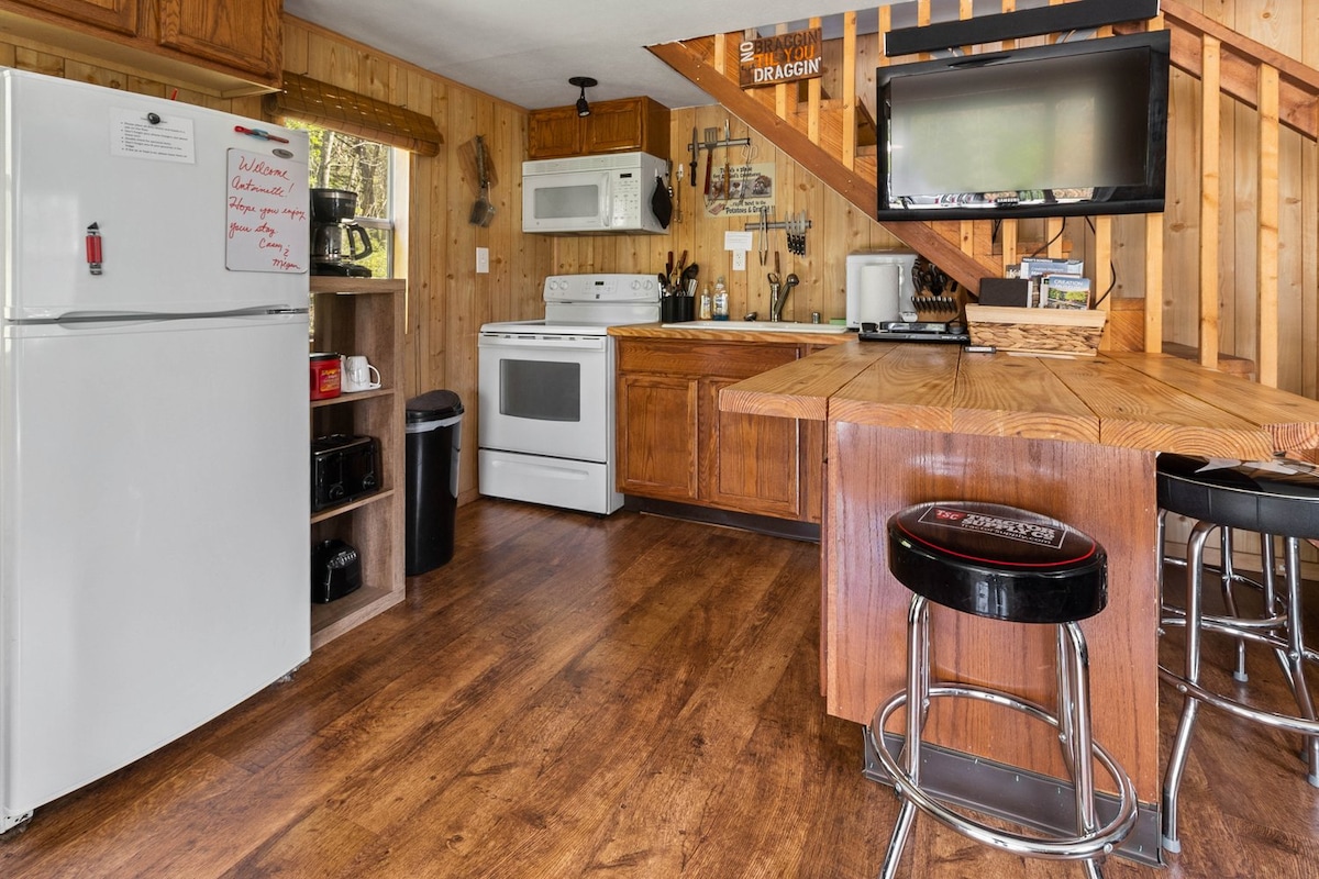 ที่พักสบายๆ ตั้งอยู่บนพื้นที่ชนบทที่สวยงามขนาด 6 เอเคอร์ มีห้องนอนแบบลอฟท์ที่มีเสน่ห์ (ความสูง 5'5") พร้อมเตียงควีนไซส์ที่สะดวกสบาย ผ่อนคลายบนดาดฟ้าด้านหลังพร้อมวิวพระอาทิตย์ตกที่สวยงาม ผ่อนคลายในเปลญวน หรือรวมตัวกันรอบกองไฟ ห้องครัวเต็มรูปแบบ ห้องน้ำ 1 ห้อง และความบันเทิงมากมายด้วยทีวี 2 เครื่อง เครื่องเล่นดีวีดีที่มีภาพยนตร์หลากหลาย เกมอาเขตแปคแมน และเกมกระดาน นั่งเล่นบนโซฟา 12 ฟุต หรือเพลิดเพลินกับระเบียงด้านหน้า เหมาะสำหรับการพักผ่อนที่ผ่อนคลาย!