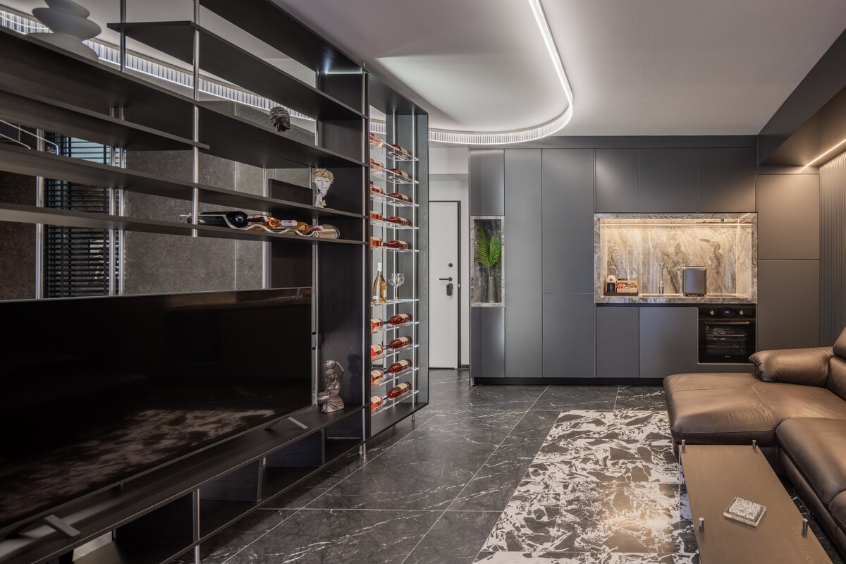 ตั้งอยู่ใจกลางเมืองพริชตินา ตรงจัตุรัสหลักของเมือง อพาร์ทเมนท์นี้ตั้งอยู่ในพื้นที่ที่เดินได้เต็มที่ เป็นพื้นที่สำหรับคนเดินเท่านั้น ไม่มีการจราจรของรถยนต์ คาเฟ่ ร้านอาหาร ร้านหนังสือ และสถานที่ทางวัฒนธรรมอยู่ห่างออกไปเพียงไม่กี่ก้าว ตามที่คาดไว้สำหรับทำเลใจกลางและมีชีวิตชีวา สภาพแวดล้อมมีชีวิตชีวาโดยเฉพาะในช่วงกลางวันและเย็น อพาร์ทเมนท์มีห้องครัวที่ออกแบบอย่างชาญฉลาดซึ่งสามารถเปลี่ยนเป็นพื้นที่นั่งเล่นได้ด้วยโทนสีที่เข้มและเข้มข้นสร้างบรรยากาศในเมืองที่อบอุ่น