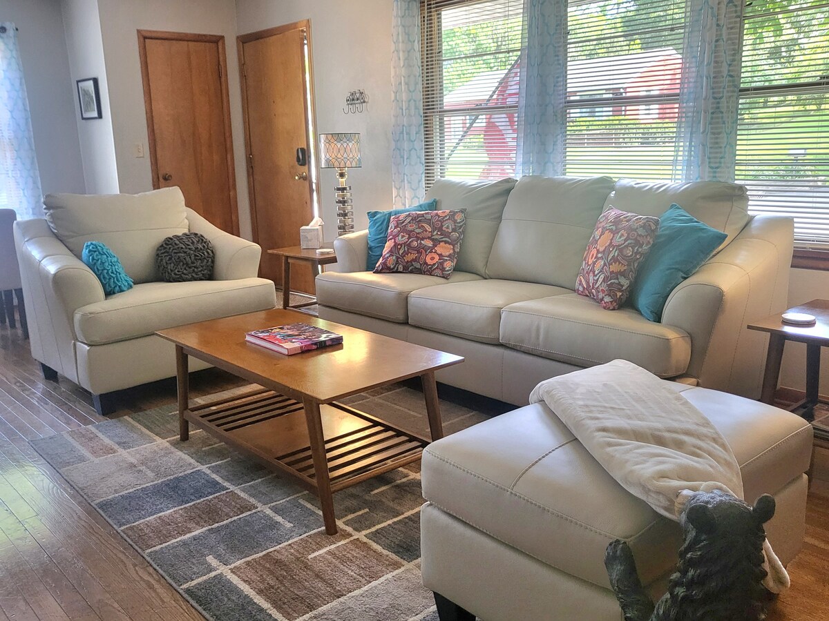 บ้านที่สว่างสดใสได้รับการปรับปรุงและอุปกรณ์ครบครันพร้อมงานศิลปะท้องถิ่นจำนวนมากที่แสดงคุณอยู่ห่างจากวิทยาเขต IU 1 ช่วงตึกทางด้านตะวันออก ให้บริการ 2 ห้องนอน 1 ห้องน้ำห้องครัว/ห้องนั่งเล่นแบบเปิดโล่งที่จอดรถริมถนน 3 แห่งและลานรั้วส่วนตัวขนาดใหญ่พร้อมวงแหวนไฟและตะขอเปลญวน ใกล้แหล่งช้อปปิ้งร้านอาหารและสถานที่พักผ่อนหย่อนใจ! เป็นสถานที่ที่เหมาะสำหรับทุกสิ่งในบลูมิงตัน เครื่องเล่นแผ่นเสียงและเกมเพื่อความเพลิดเพลินของคุณ