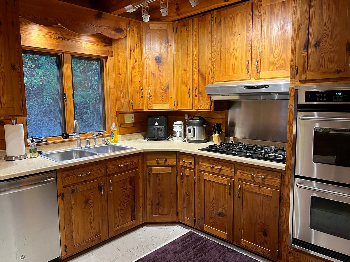 สร้างความทรงจำบางอย่างที่กระท่อมไม้ที่สร้างด้วยมือแบบชนบทนี้ เคบินนี้สร้างขึ้นโดยใช้ท่อนไม้สนที่นำกลับมาใช้ใหม่จากโรงนายาสูบในท้องถิ่น ห้องนอนทั้ง 2 ห้องตั้งอยู่ในห้องใต้หลังคาแบบเปิดโล่งชั้นบน มีการติดตั้งม่านความเป็นส่วนตัวแต่ไม่ปิดกั้นเสียงรบกวนเคบินเต็มไปด้วยสิ่งอำนวยความสะดวกรวมถึงเครื่องซักผ้า/เครื่องอบผ้าอ่างน้ำร้อนอ่างอาบน้ำแบบมีขาตั้งโบราณพร้อมฝักบัวห้องครัวเต็มรูปแบบอ่างจากุซซี่ดาดฟ้าด้านหลังขนาดใหญ่พื้นที่เล่นเกมพร้อมโต๊ะฟุตบอลและวิวที่สวยงามของ Brushy's เล็กๆน้อยๆ