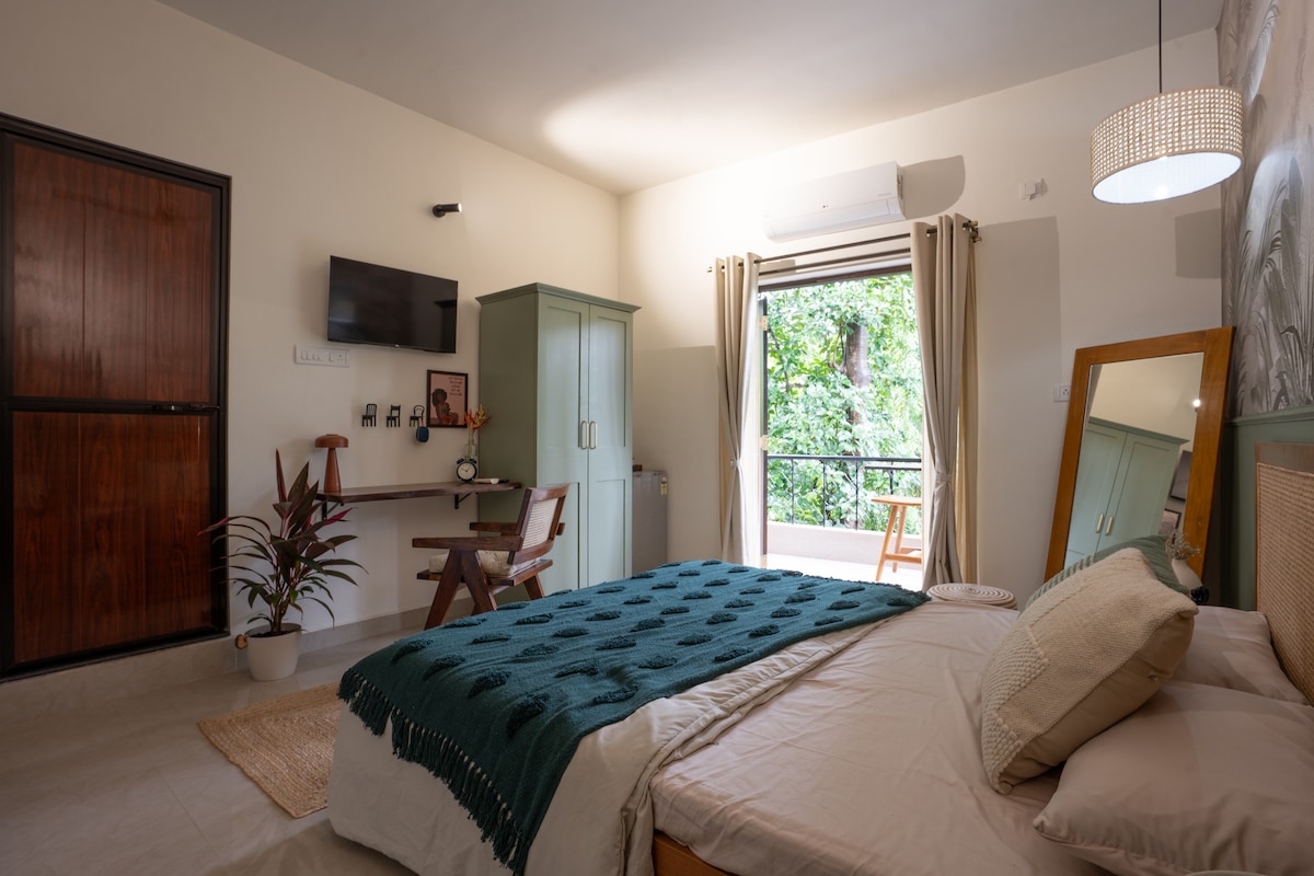 ห้องพักเงียบสงบล้อมรอบด้วยสวนและต้นไม้! มีทางเข้าประตูแยกต่างหากในพื้นที่ปลอดภัยใน Anjuna นี่คือสิ่งที่คุณจะได้รับ: - เตียงที่ปรับปรุงใหม่ + ห้องน้ำประมาณ 25 ตร.ม. + พื้นที่นั่งเล่นกลางแจ้งของตัวเอง - ประตูและหน้าต่างกันเสียงและกันน้ำฝน พร้อมม่าน - Wi-Fi ฟรี: เราเตอร์ในห้อง 50 MB/s - ผ้าปูที่นอนผ้าฝ้าย + ผ้านวม - ตู้เย็นเล็ก - เครื่องปรับอากาศ - มีชั้นไม้ทำมือ ลิ้นชัก กระจก 2 บาน - ห้องน้ำทันสมัย + ฝักบัวน้ำร้อน + ก๊อกน้ำ - ก๊อกน้ำเพื่อสุขภาพ + กระดาษ 1 ม้วน - เครื่องใช้ในห้องน้ำต้อนรับฟรี - ร้านอาหารในบริเวณที่พัก