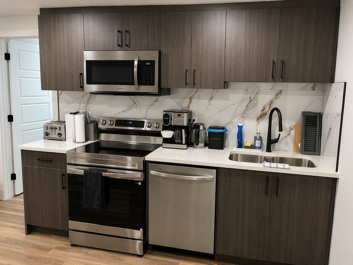 สนามบิน YEG (25 นาที) - ห้องสวีทชั้นใต้ดินที่มีสไตล์และสะดวกสบาย