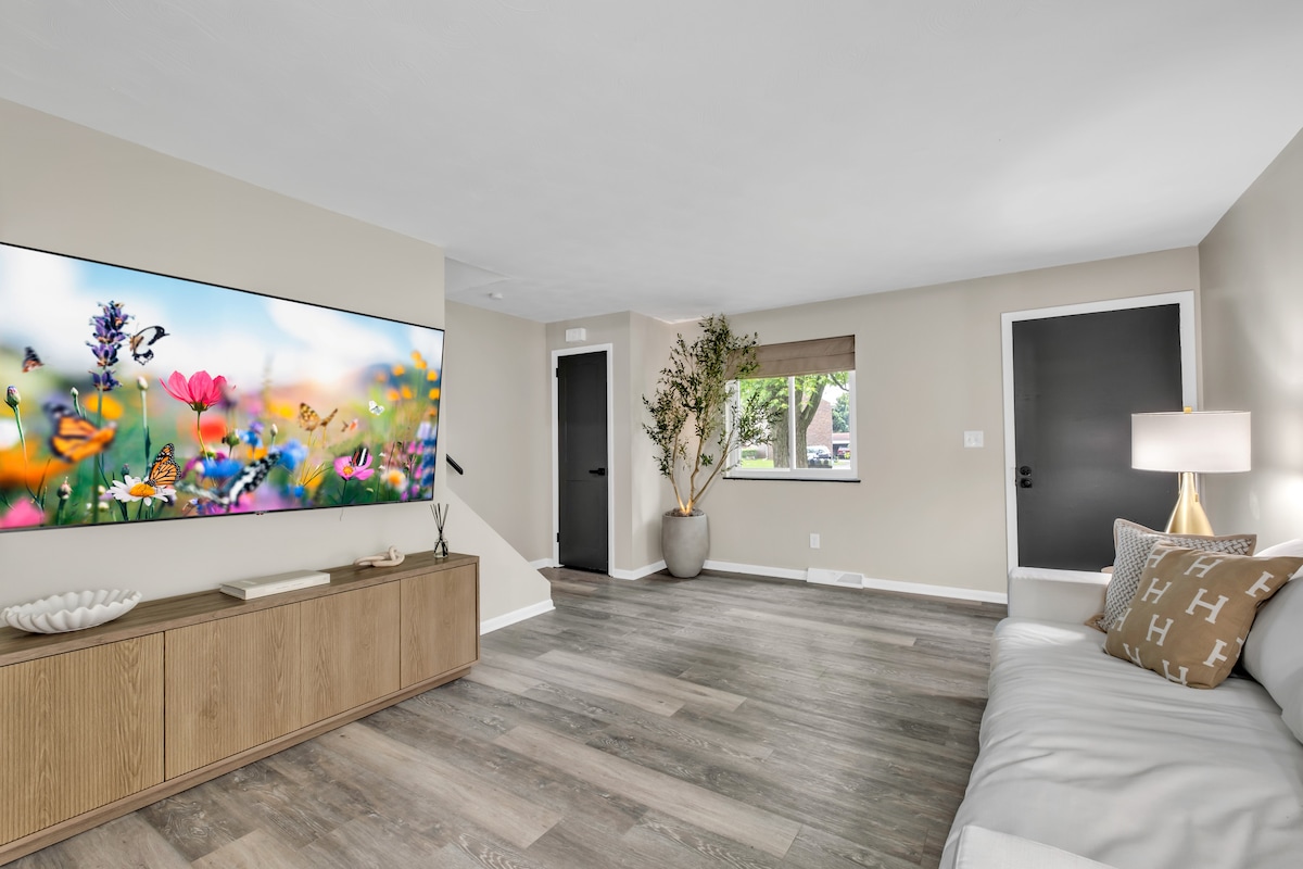 ยินดีต้อนรับสู่ที่พักที่เหมือนอยู่บ้านตัวเอง! เพลิดเพลินกับการเข้าพักของคุณในความสะดวกสบายที่เงียบสงบพร้อมความสะดวกสบายในการช็อปปิ้งและร้านอาหารใกล้ๆ ห้องครัวสไตล์โมเดิร์นพร้อมเครื่องใช้สแตนเลส Kuerig อุปกรณ์ทำอาหารจานชามช้อนส้อมแก้วกาแฟและแก้วน้ำ ห้องนอนทั้งสองห้องให้ความสะดวกสบายอย่างอบอุ่นด้วยผ้าปูที่นอนผ้าห่มหมอนอิงและทีวี Roku ขนาด 60 ” ห้องน้ำเต็มรูปแบบบนชั้นหลักและห้องน้ำเต็มรูปแบบในชั้นใต้ดินมีผ้าเช็ดตัวและผลิตภัณฑ์อาบน้ำมากมาย มีเครื่องซักผ้า/เครื่องอบผ้าชั้นหลักพร้อมสบู่ซักผ้า