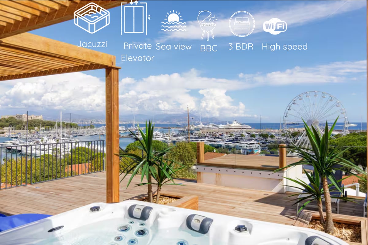 Welcome to La Maison Arène, a stunning high-end apartment with a private elevator, located in the charming Lacan district of Old Antibes — just steps from the sea. Relax on the spectacular rooftop terrace featuring a jacuzzi with panoramic sea views, a stylish lounge area, and a barbecue for unforgettable evenings overlooking Port Vauban .Featuring 3 spacious bedrooms, 2 elegant bathrooms, and a gourmet kitchen, it’s the perfect haven for an unforgettable stay on the French Riviera.