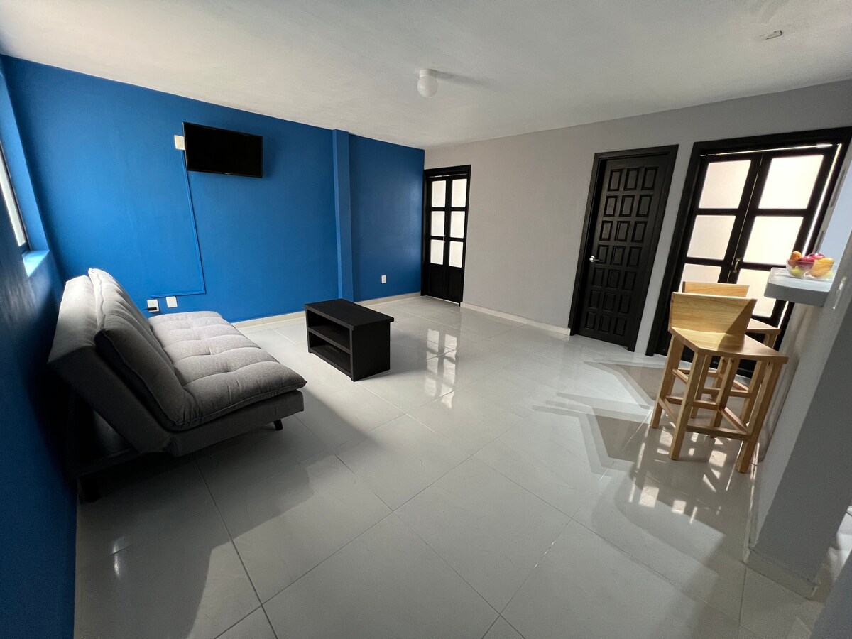 Complejo de 8 nuevos departamentos amueblados, cómodos y espaciosos. Ubicados a 1/2 cuadra del Templo Santo Domingo y mercado/artesanías, 1 cuadra del andador Eclesiástico y 3 cuadras de Catedral. Cada departamento con 2 recámaras, 2 ó 3 camas matrimoniales, closets, 1 ó 2 baños completos, cocina equipada, sala con sofá-cama doble, televisión, comedor, área de trabajo, wifi, cámaras de seguridad, recepción, personal de mantenimiento y limpieza, roof garden con vista excepcional de la ciudad.