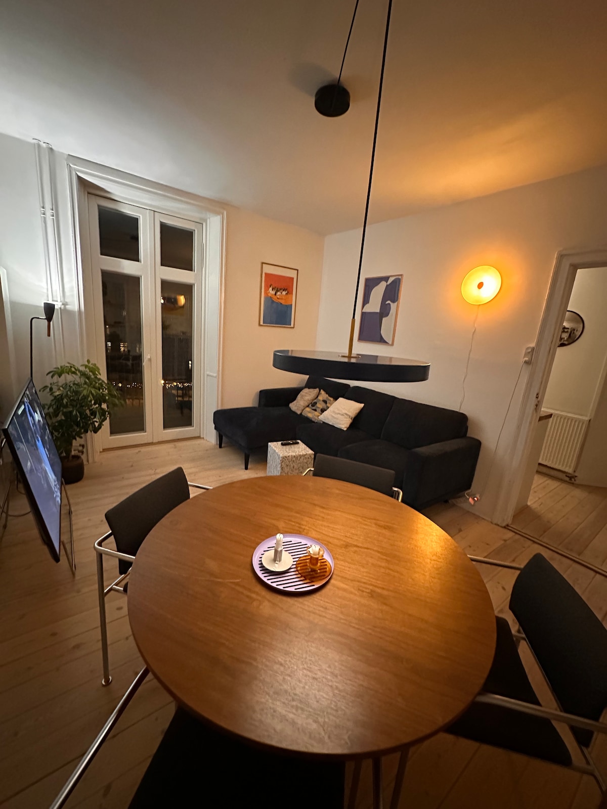 อพาร์ทเมนท์แห่งนี้ตั้งอยู่ในใจกลางเมืองโคเปนเฮเกนท่ามกลางย่านช้อปปิ้งที่มีชีวิตชีวา ห้องหันหน้าไปทางสนาม แต่เมื่อเปิดหน้าต่างก็ยังได้ยินเสียงชีวิตในเมืองที่คึกคักอยู่เบื้องหลัง ย่านนี้เต็มไปด้วยคาเฟ่ บาร์ และแหล่งช้อปปิ้ง ถนน "Strøget" ที่มีชื่อเสียงอยู่ห่างจากอพาร์ทเมนท์เพียงไม่กี่ก้าว และทอดยาวไปทั่วใจกลางเมือง เหมาะสำหรับคู่รัก มีเตียงขนาด 200 x 180 ในห้องนอนและโซฟานอนใหม่