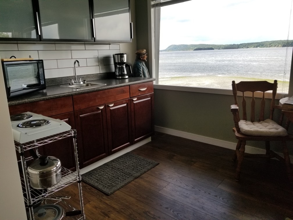 Overlooking the beach on Ladysmith Bay, this beautifully appointed and private oceanfront suite boasts unobstructed, floor to ceiling, views of the Bay. From the comfort of your bed, watch the morning sun rise over the water, as you enjoy your morning cup of coffee. Relax all day or evening on the lower seaside deck, while watching the variety of birds, seals, otters, & sea lions . Winter 30 day rate November 14 - April 30th. $1650 plus $150 cleaning Seaside Escape, Ladysmith, BC