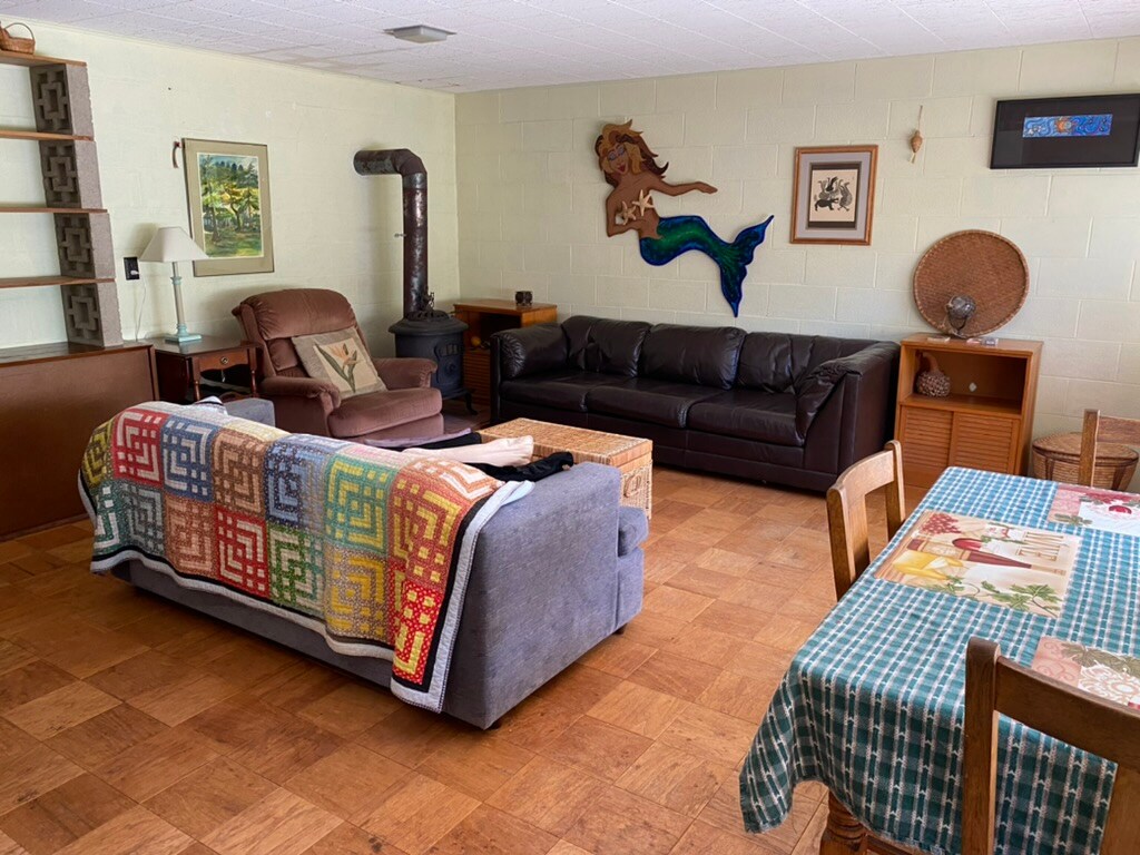 บ้านที่สะดวกสบายบนพื้นที่ใกล้ทะเลพร้อมเสน่ห์แบบมิดเซ็นจูรี่และปรับปรุงใหม่ด้วยหน้าต่างและประตูใหม่พื้นกระเบื้องและพรม ห้องครัวเป็นแบบพื้นฐานแต่ใช้งานได้ดีและยังคงมีกระเบื้องดั้งเดิม ห้องนอน 2 ห้องมีเตียงขนาดควีนไซส์และห้องนั่งเล่นมีโซฟาแบบพับได้ขนาด 2 ชั้น ห้องนอนที่สามมีเตียงแฝด มีห้องน้ำสองห้องห้องหนึ่งมีกระเบื้องสีเหลืองดั้งเดิมและอ่างอาบน้ำ (ไม่มีฝักบัว) และอีกห้องหนึ่งได้รับการปรับปรุงใหม่ทั้งหมดด้วยฝักบัวแบบวอล์คอินปูกระเบื้องและอุปกรณ์ใหม่