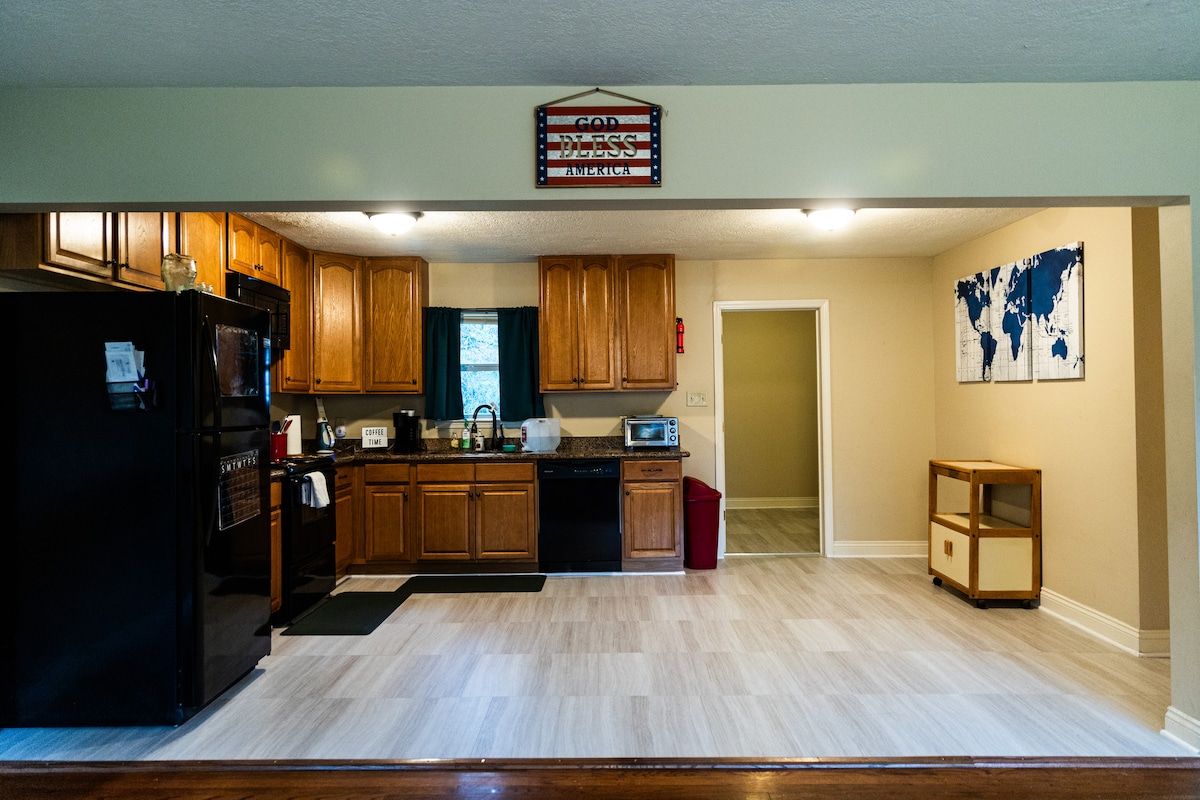 ห้องพักอยู่ระหว่างการปรับปรุง! โปรดส่งข้อความถึงฉันก่อนส่งคำขอ หากคุณต้องการจองเพียง 1 วันเต็มสำหรับงานอีเวนท์ โปรดส่งข้อความส่วนตัวถึงฉันเพื่อขอราคาและรายละเอียด Big Barn มี 4 ห้องนอนพร้อมเตียงควีนไซส์ในแต่ละห้อง มีห้องน้ำสองห้องอยู่ทั้งสองด้านของห้องครัว ในครัวมีเตาอบ ตู้เย็นขนาดใหญ่ ไมโครเวฟ เตาปิ้งขนมปัง และเครื่องชงกาแฟ สิ่งอำนวยความสะดวกนี้ยังมีห้องซักรีดเพื่อความสะดวกของผู้เข้าพัก