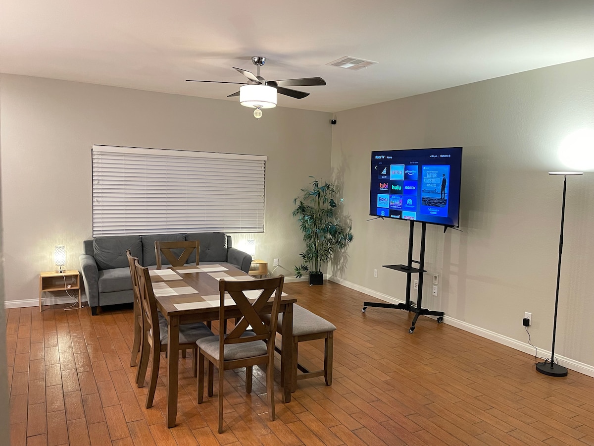 * บ้านสไตล์เอ็กเซกคิวทีวีใหม่พร้อมห้องนอนส่วนตัวทีวีขนาด 65 "พร้อมช่องพรีเมียม (Directv) ห้องน้ำส่วนตัวพร้อมสิ่งอำนวยความสะดวกในย่านที่ปลอดภัยเงียบสงบในพรีเมียร์ Coronada Ranch Southwest Las Vegas 5 ไมล์จาก World Famous Las Vegas Strip ห่างจากสนามบินนานาชาติลาสเวกัส 6 ไมล์ห่างจากสนามกีฬา Allegiant และ T-Mobile Arena 5 ไมล์และอยู่ห่างจากร้านค้าร้านค้าและร้านอาหารเพียงไม่กี่นาที เหมาะสำหรับการพักผ่อนสำหรับคู่รักหรือการเดินทางเพื่อธุรกิจไปเวกัส! สิ่งที่เกสต์ใช้ได้ WIFI ฟรี ที่จอดรถบนถนน
