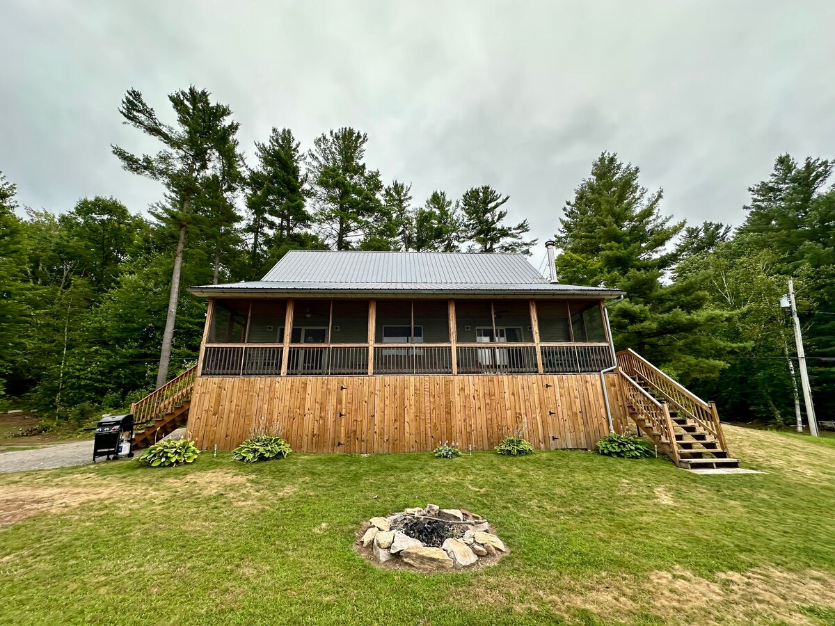 คอทเทจน่ารักพร้อมระเบียงที่มีตาข่ายกั้น ท่าเรือส่วนตัว และวิวพระอาทิตย์ตกที่น่าตื่นตาตื่นใจของทะเลสาบแบล็คที่สวยงาม เพลิดเพลินกับการพักผ่อนของการใช้ชีวิตริมทะเลสาบโดยใช้เรือคายัค/กระดานพายที่มีให้ หรือเดินทางไปเที่ยว 1000 เกาะใกล้เคียง แคนาดา หรืออาดิรอนแดกส์ เรายินดีต้อนรับเด็กและสุนัขสู่ที่พักที่เหมาะสำหรับครอบครัวของเรา คุณจะเพลิดเพลินกับการทำอาหารบนเตาย่างใหม่ สโมร์ริมหลุมไฟ พายเรือคายัค ตกปลา Wi-Fi และเล่นคอร์นโฮลกับบอร์ดเกม คุณยังสามารถเทียบเรือของคุณเองบนท่าเรือส่วนตัวได้ด้วย