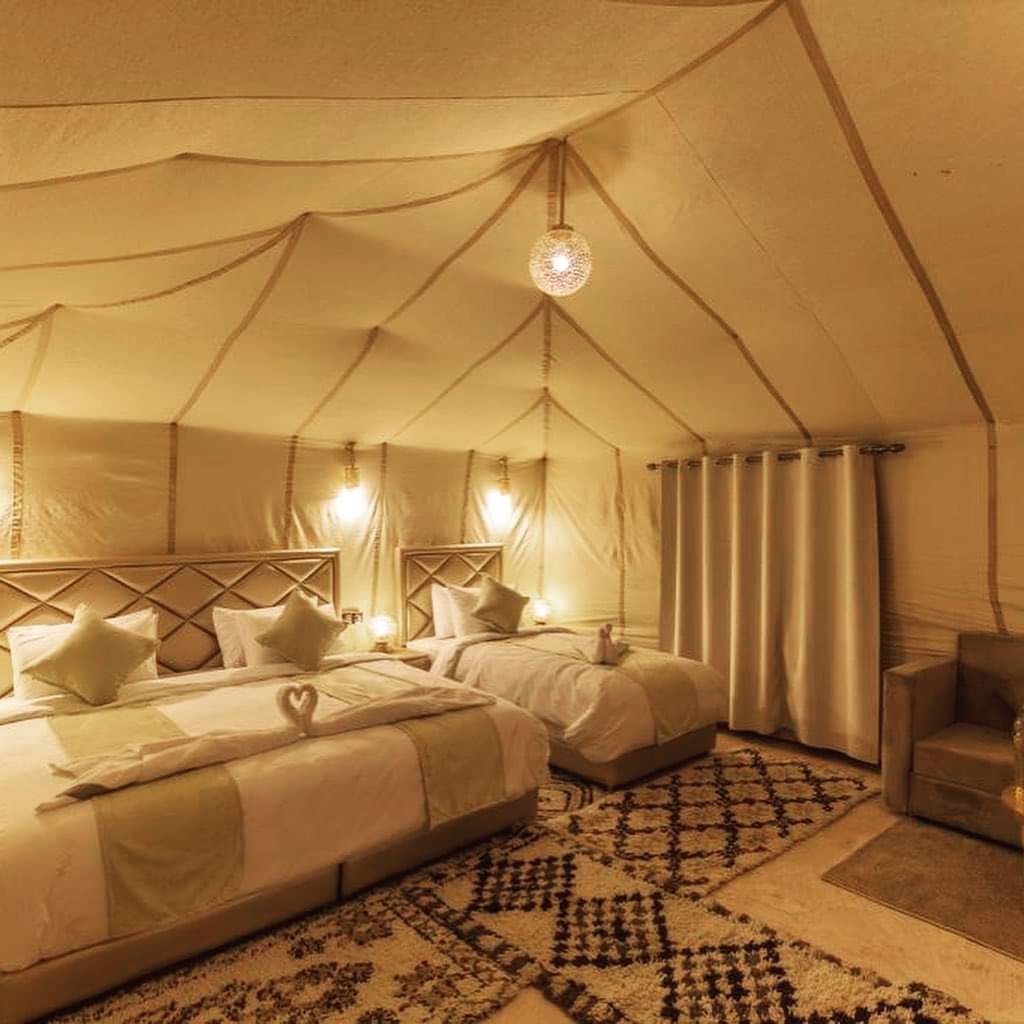 เมร์ซูกา แคมป์ทะเลทรายสุดหรูพร้อมเครื่องทำความร้อน เต็นท์หรูของเรามอบความสะดวกสบายทันสมัยพร้อมเสน่ห์แบบเบอร์เบอร์ดั้งเดิม มีห้องน้ำในตัวและวิวทะเลทรายที่สวยงาม เพลิดเพลินกับการขี่อูฐทัวร์ 4x4 และช่วงเย็นที่น่าอัศจรรย์ภายใต้ท้องฟ้าที่เต็มไปด้วยดวงดาว สัมผัสการผสมผสานที่ลงตัวของการผจญภัยวัฒนธรรมและการพักผ่อน