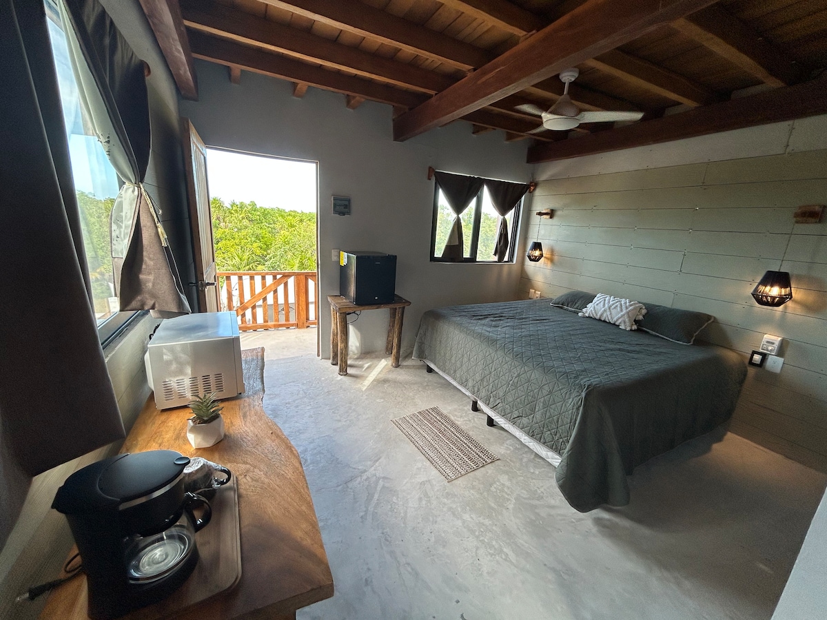 ห้องเตียงใหญ่ที่น่าทึ่งในสถานที่ที่ดีที่สุดใน Holbox