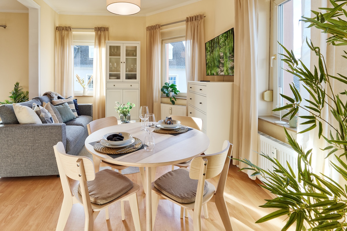 อพาร์ทเมนท์ที่สว่างและได้รับการปรับปรุงใหม่ของเราในเทรียร์แยกออกจากสวน Mattheiser Pond ริมถนนและได้รับการตกแต่งโดยเราด้วยความรักในรายละเอียดที่สวยงามและการออกแบบที่ทันสมัย แปลนห้องที่สว่างและเปิดโล่งมีพื้นที่กว้างขวางสำหรับทำอาหารร่วมกันเล่นเกมและทีวีในช่วงเย็นหรือเพียงเพื่อการพักผ่อนด้วยไวน์ Moselle สักแก้วแสนอร่อย ใจกลางเมืองประวัติศาสตร์อยู่ในระยะเดินถึงหรือเดินทางสะดวกโดยรถประจำทางในเมือง ป้ายรถเมล์อยู่ห่างออกไปเพียง 30 เมตร
