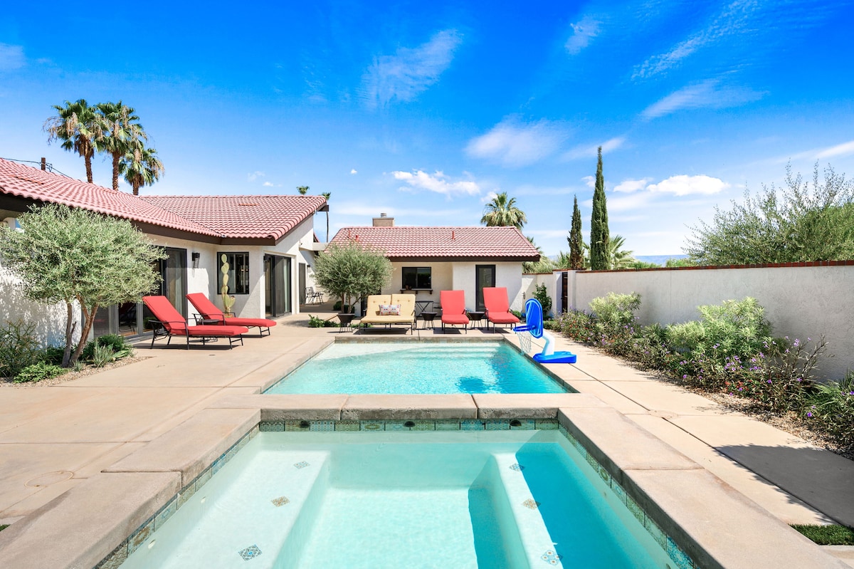 หลีกหนีไปยังโอเอซิสทะเลทรายส่วนตัวของคุณ ที่ซึ่งแสงแดด ต้นปาล์ม และวิวสนามกอล์ฟอันเงียบสงบสร้างการพักผ่อนในอินดิโอที่สมบูรณ์แบบ 💦 สระว่ายน้ำสระน้ำเค็มและสปาที่ให้ความร้อนฟรี 🎮 ห้องเล่นเกม: โต๊ะพูล ปิงปอง อาร์เคดและสมาร์ททีวี 🛏️ นอนได้ 10 คน: เตียงคิงไซส์ 2 เตียง เตียงควีนไซส์ 1 เตียง เตียงควีนไซส์+เตียงสองชั้นเต็ม 🍳 ห้องครัวของเชฟ + บาร์กาแฟ 🔥 เตาผิง บาร์บีคิว รับประทานอาหารกลางแจ้งและเลานจ์ 🎾 เทนนิส พิคเกิลบอล และห้องออกกำลังกาย (ผู้เข้าพัก 4 คน) 🚗 ใกล้อินเดียนเวลส์ ลากินตา และโจชัวทรี