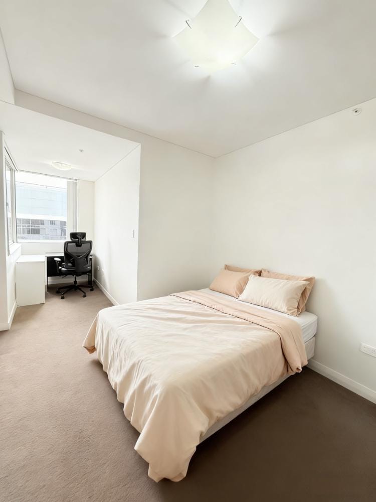 This stylish apartment offers everything you need for a relaxing stay, including a private free underground parking space for your convenience. Ideally located just a short walk from the train station, shopping centres, and a wide variety of delicious local eateries, you’ll enjoy the best of both comfort and convenience. It’s only one stop to Sydney Domestic Airport and two stops to Sydney CBD—making it a perfect base for both business and leisure travelers.