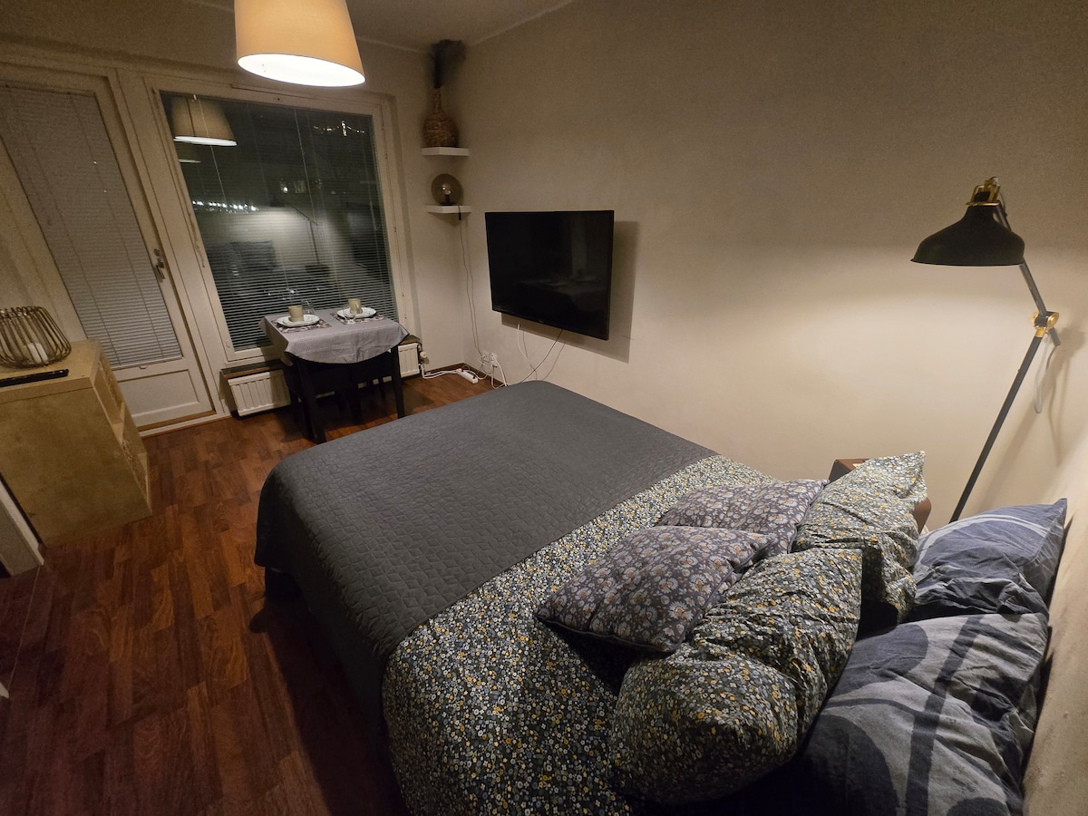 Moderni ja tilava kaksio (48m2) huippusijainnilla ydinkeskustassa. Keskustan palvelut ympärillä. Vastapäätä S-Market, joka auki joka päivä klo 23 saakka. Matkakeskukselta vain 5 minuutin kävely. Kysy tarjous pidemmistä majoittumisista. Modern and spacious two-room apartment (48m2) with a brilliant location right in the city centre. A grocery store (open until 11pm) across the street. Just 5 min walk from train/bus station. Ask for an offer for longer stays.