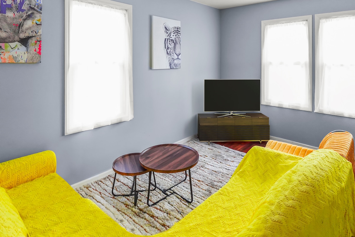 3 ห้องนอนที่มีศิลปะ: ใกล้รถไฟใต้ดิน สนามกีฬา + ลานส่วนตัว