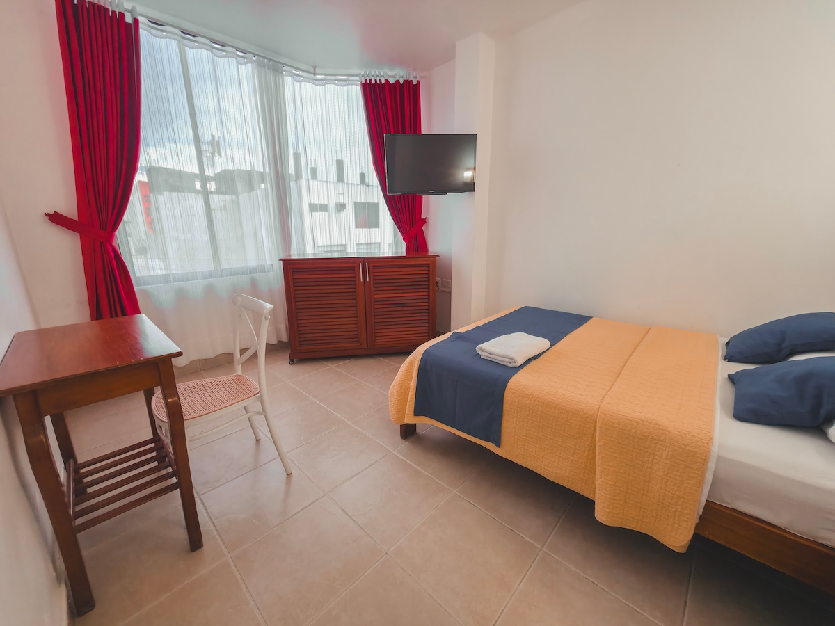 Disfruta de una experiencia con estilo en este alojamiento céntrico. Cerca del malecón de la ciudad a 5 minutos caminando cerca de bancos supermercados y farmacias zona segura a 10p metros de parada de buses vía principal de la ciudad