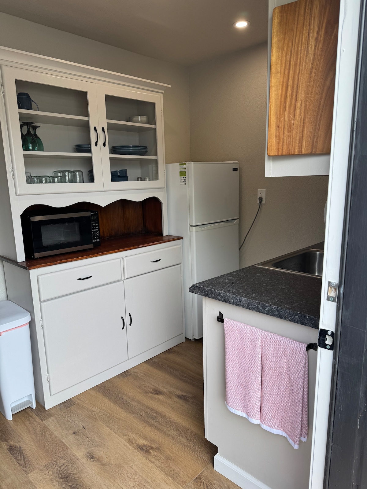 ห้องชุดสะอาดสำหรับผู้เข้าพักพร้อมตู้เย็น 2 ตู้ในร็อกคลิน แคลิฟอร์เนีย