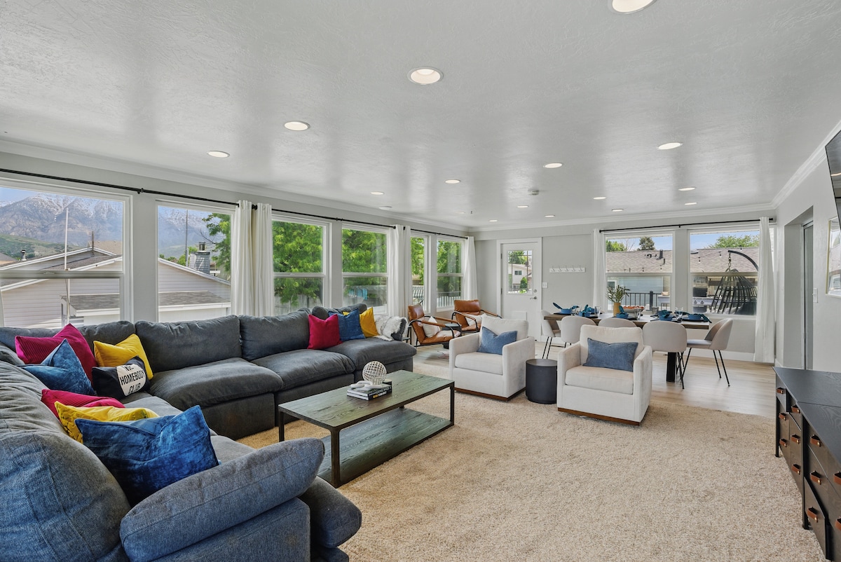 รวมตัวกันในที่พักที่กว้างขวางและสวยงามของเราใน Pleasant Grove, UT! มีเตียงมากพอสำหรับรองรับกลุ่มใหญ่ ไม่ว่าจะมาเยี่ยมครอบครัวฉลองการสำเร็จการศึกษางานแต่งงานทริปเล่นสกีหรือสำรวจพื้นที่บ้านหลังนี้จะดูแลสิ่งจำเป็นในสไตล์ที่สะดวกสบายและผ่อนคลาย อยู่ในลานด้านหลังรอบหลุมไฟหลายหลุมและเลานจ์ในอ่างอาบน้ำร้อน สนุกสำหรับทั้งครอบครัวด้วยฟุตบอลปิงปองและฮอกกี้อากาศ! * สำหรับพื้นที่เพิ่มเติมคุณอาจให้เช่าห้องใต้ดินได้