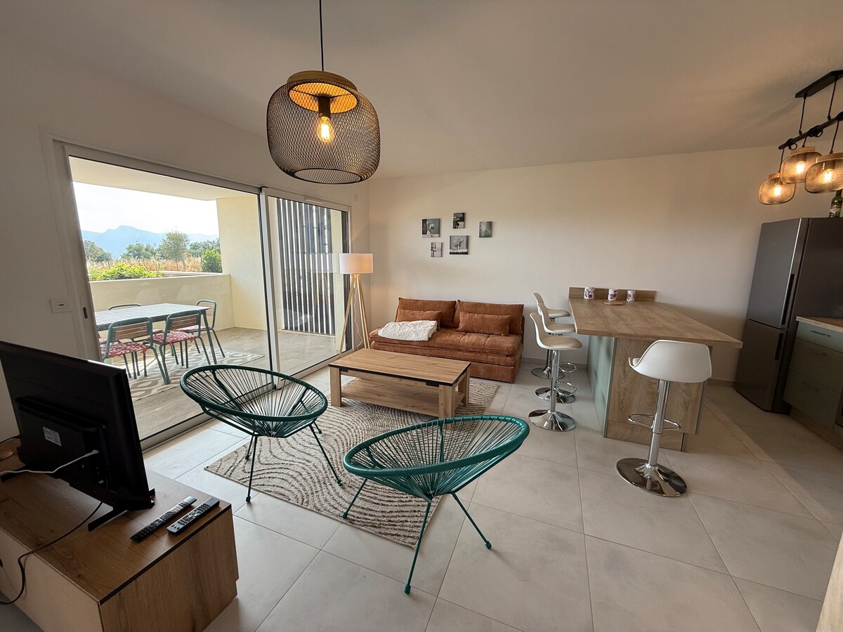 Chers voyageurs , Bienvenue dans notre appartement! Notre logement récemment rénové peut accueillir jusqu'à quatre personnes, idéal pour des vacances en famille ou entre amis. Vous êtes à : 🐚 100 m de la plage 🛒 3 min à pied du supermarché 🚉 200 mètres de la gare qui dessert toutes les plages entre Calvi et l’Ile Rousse. ✈️10 minutes de l’aéroport .