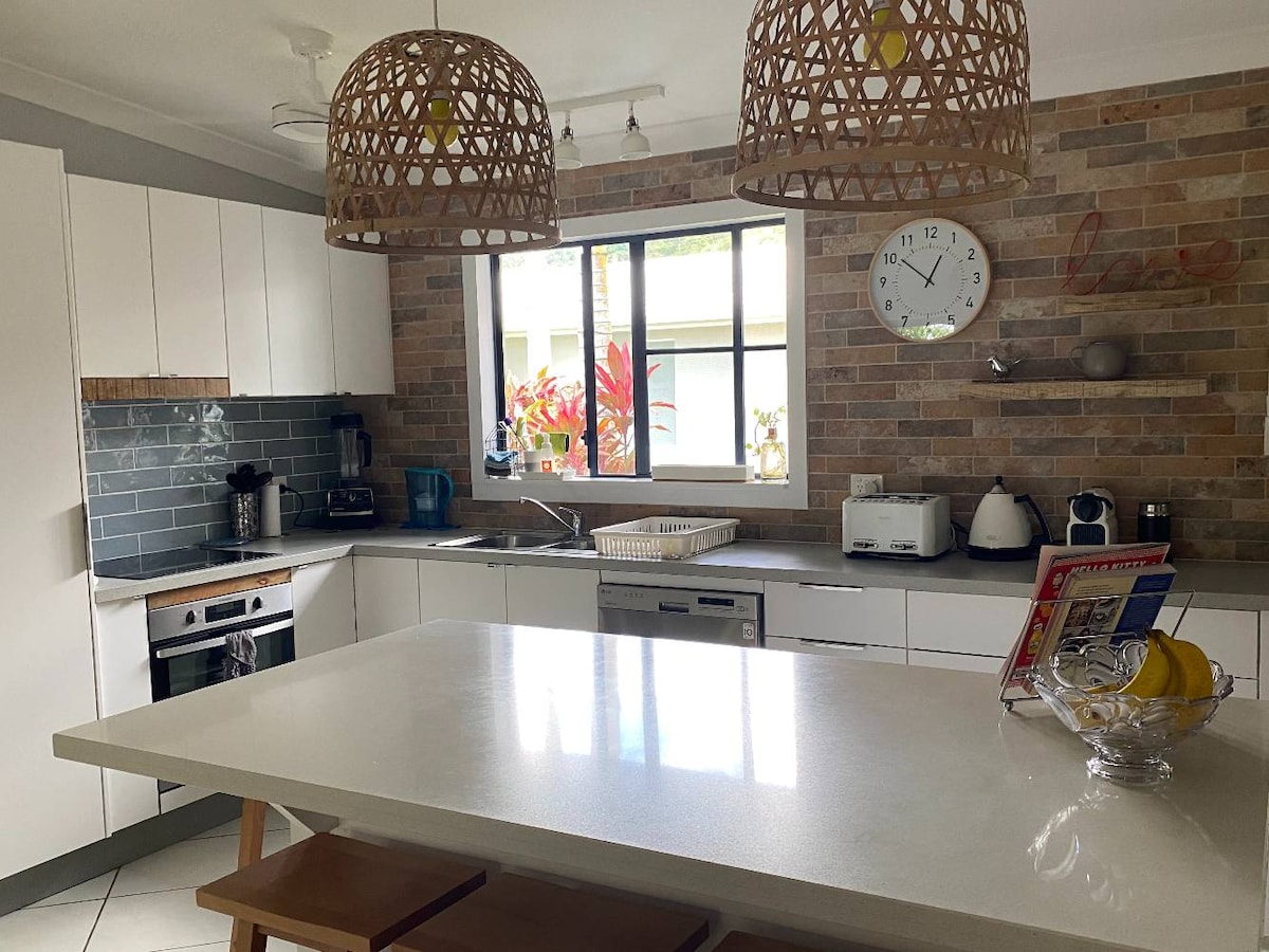 New suite with ocean, hilly rainforest and island views, providing a sense of peace and beauty. Close to the action of Airlie's restaurants and shops, yet tucked away enough to be a very relaxing experience Own entrance, balcony, garden landing, bathroom and kitchenette. 4 min drive or 15 min downhill walk to main street and public transport. Birds, breezes, treed valleys, rock gardens and wildlife. Suite situated at northern end of home, some daily sounds may be heard. Respecting your privacy.