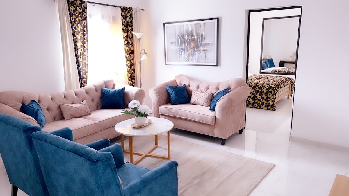 Modern & air-conditioned 2 room apartment in top location Welcome to our well-kept apartment hotel in the popular Nukafu district – centrally located + backup generator Our accommodation offers you: Cozy furnishings with kitchen, TV, fridge, microwave & coffee maker Free Wi-Fi throughout Only 10 minutes from airport, city center & beach 24/7 secured building for your safety and privacy