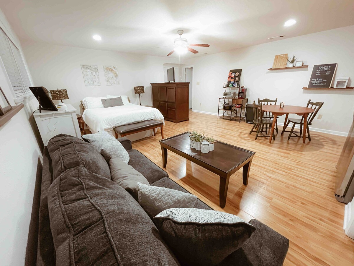 นี่เป็นห้องชุดสำหรับผู้เข้าพักที่ติดกับที่พักของเรา ตั้งอยู่ในย่านที่เงียบสงบ เดินเพียง 10 นาทีไปยังห้องสมุดสาธารณะและสวนพฤกษศาสตร์หลักแบตันรูช ที่พักนี้เหมาะสำหรับผู้เข้าพักสูงสุด 4 คนเนื่องจากมีการตกแต่งด้วยเตียงควีนไซส์และโซฟาเบด Airbnb นี้มีตู้เย็นขนาดใหญ่ครัวขนาดเล็กที่มีไมโครเวฟหม้อทอดลมหม้อตุ๋นเครื่องชงกาแฟ (ไม่ใช่ keurig) เครื่องปิ้งขนมปังและเครื่องทำวาฟเฟิลเครื่องปั่นและหม้อหุงข้าว มีที่จอดรถบนถนน