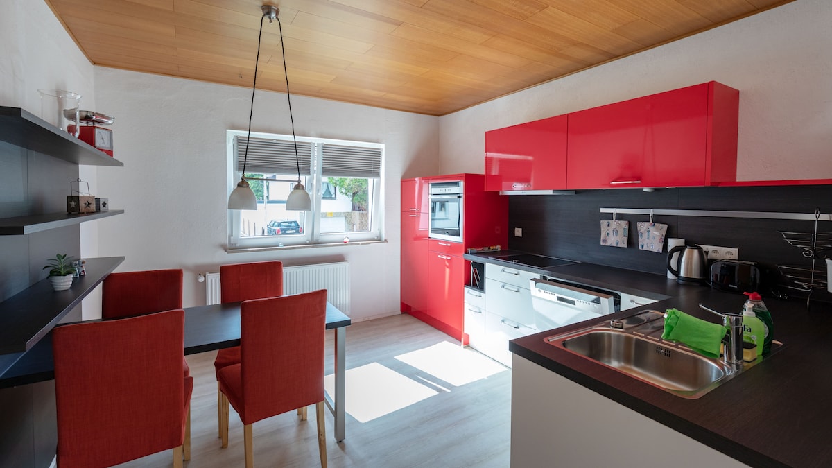 อพาร์ทเมนท์กว้างขวางพร้อม 2 ห้องนอนในทาวน์เฮาส์ที่ลงประกาศ ใจกลางเมืองแต่เงียบสงบ 3 นาทีจากสถานีรถไฟ - ป้ายรถเมล์ที่บ้าน 5 นาทีถึงโซนถนนคนเดิน เดินทางโดยรถยนต์ 30 นาทีไปยัง Nürburgring ในตำนาน บรรยากาศที่เป็นมิตรกับครอบครัวและไม่ซับซ้อนรอคุณอยู่ในบ้านเดี่ยว เหมาะสำหรับคู่รักนักเดินทางคนเดียวนักธุรกิจและครอบครัว มีที่จอดรถฟรีริมถนน