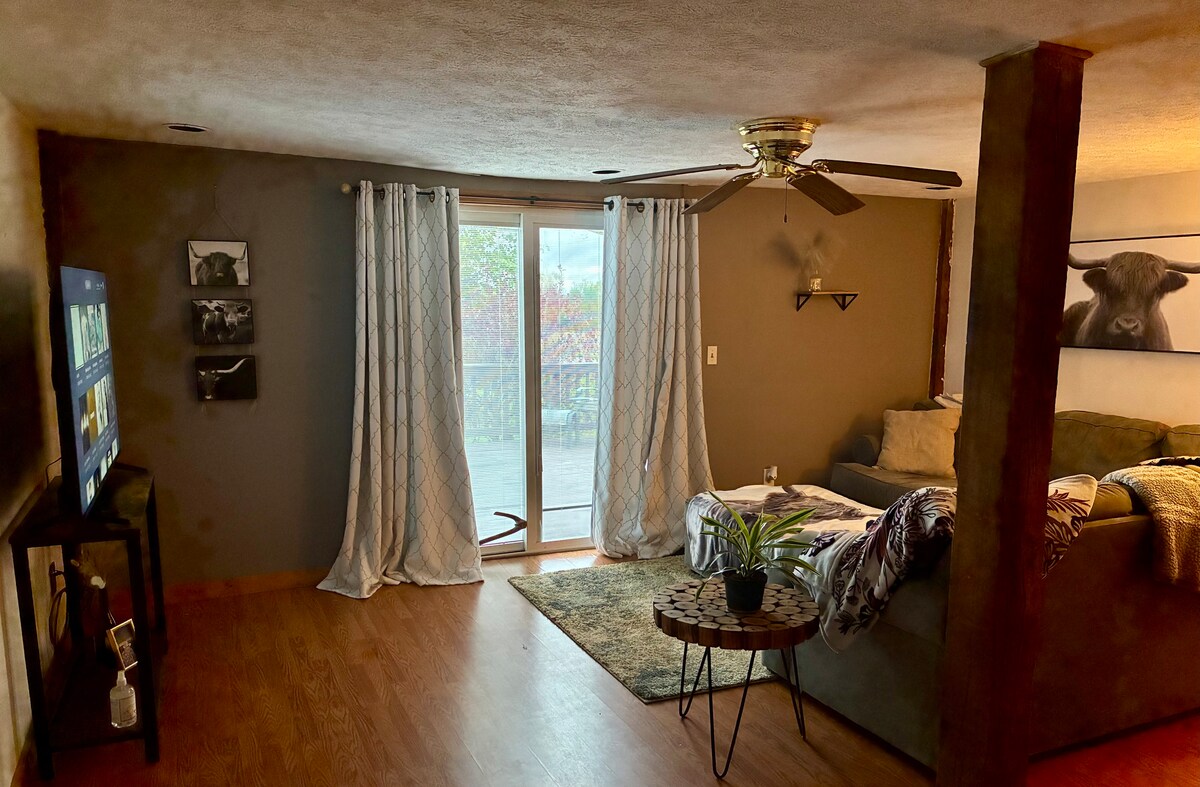 พักผ่อนอย่างสบายใจที่สถานที่พักผ่อนที่ไม่เหมือนใครและเงียบสงบที่ Butternut Maple Farm ใจกลางเมืองเบอร์ตันใกล้กับ Geauga County Fairgrounds และห่างจาก Amish Country เพียงไม่กี่ไมล์ อพาร์ทเมนท์สตูดิโอส่วนตัวใหม่เอี่ยมที่ไม่มีควันและมีอุปกรณ์ครบครันแห่งนี้อยู่บนชั้น 2 ของบ้านน้ำตาลที่มีดาดฟ้าสวยงามที่ติดอยู่ด้วย เหมาะสำหรับดื่มกาแฟยามเช้าของคุณ ในช่วงฤดูน้ำตาลเมเปิ้ล (มกราคม - มีนาคม) คุณจะได้รับที่นั่งแถวหน้าเพื่อดูและ/หรือมีส่วนร่วมในการทำน้ำเชื่อมเมเปิ้ลออร์แกนิกที่ได้รับรางวัลของเรา