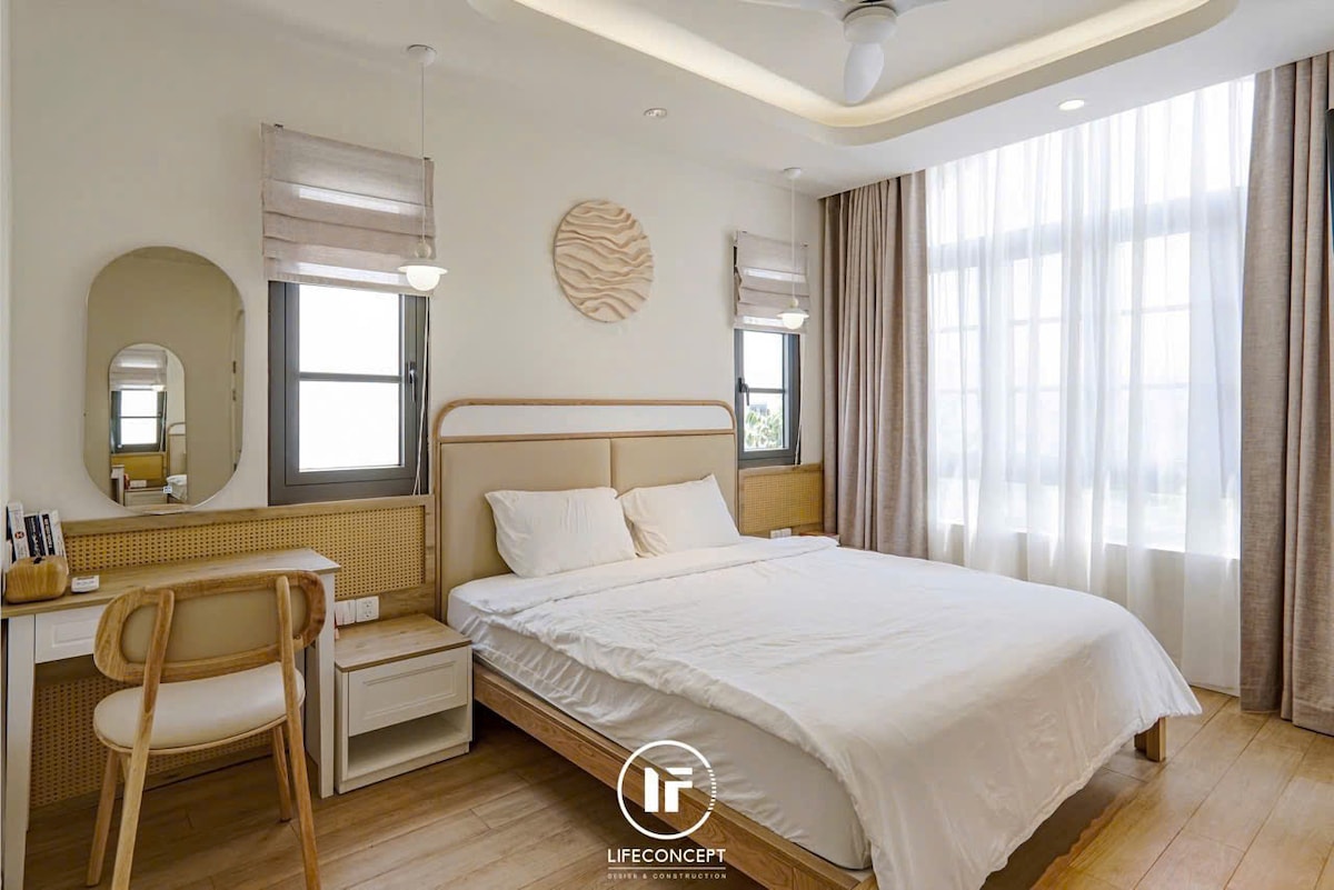 Trải nghiệm kỳ nghỉ tuyệt vời cùng gia đình và bạn bè tại căn biệt thự sang trọng, chỉ cách biển vài phút đi bộ. - 3 phòng ngủ rộng rãi, 3 nhà vệ sinh tiện nghi - Sức chứa thoải mái 10–15 khách - Thiết kế hiện đại, tinh tế, ngập tràn ánh sáng tự nhiên - Ban công và giàn hoa giấy rực rỡ, mang đến không gian thư giãn và sống ảo tuyệt đẹp. - Phòng khách lớn, bếp đầy đủ dụng cụ để bạn có thể tổ chức bữa tiệc gia đình hoặc BBQ cuối tuần - Sân vườn thoáng mát, hàng rào trắng lãng mạn riêng tư
