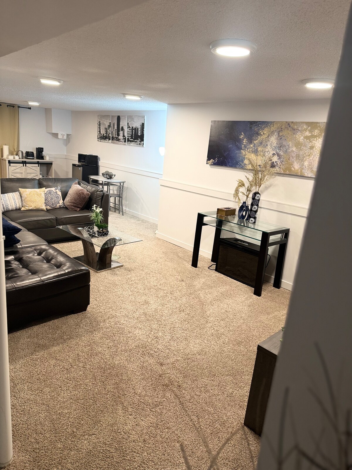 ห้องชุดชั้นใต้ดินสไตล์โมเดิร์นที่อบอุ่นในเดวอนเชียร์วินนิเพก