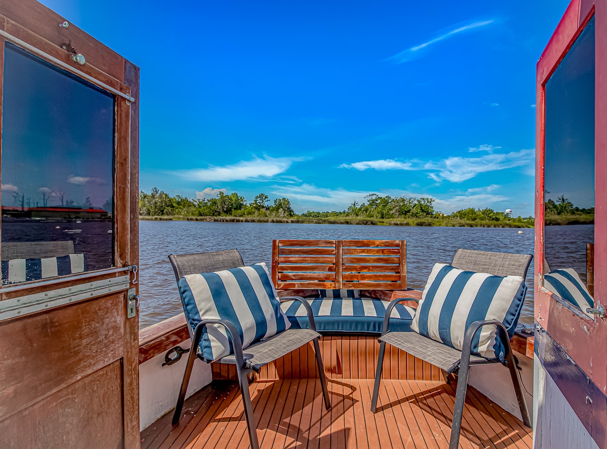 Reconnect กับธรรมชาติที่การหลบหนีที่น่าจดจำนี้ แม็กกี้โจเป็นเรือบ้านที่ได้รับการฟื้นฟูอย่างสมบูรณ์ในปี 1970 เธอมีตู้เย็นขนาดใหญ่เตาแก๊สไมโครเวฟและเตาปิ้งขนมปัง ด้านนอกบนดาดฟ้าด้านหลังเธอมีเตาย่างแก๊ส ท่าเทียบเรือขนาดเล็กมีเตียงเต็มรูปแบบ 2 เตียงที่สะดวกสบายมาก Galley dinette ทำให้เป็นเตียงและโซฟาในรถเก๋งก็ดึงออกมาด้วย ในขณะที่อยู่บนดาดฟ้าคุณจะเห็นนกอินทรีปลาโลมาจระเข้หรือตกปลาที่กระโดดลงมาจากน้ำ ฉันยังมีเรือคายัคคู่ 2 ลำสำหรับการใช้งานของคุณ