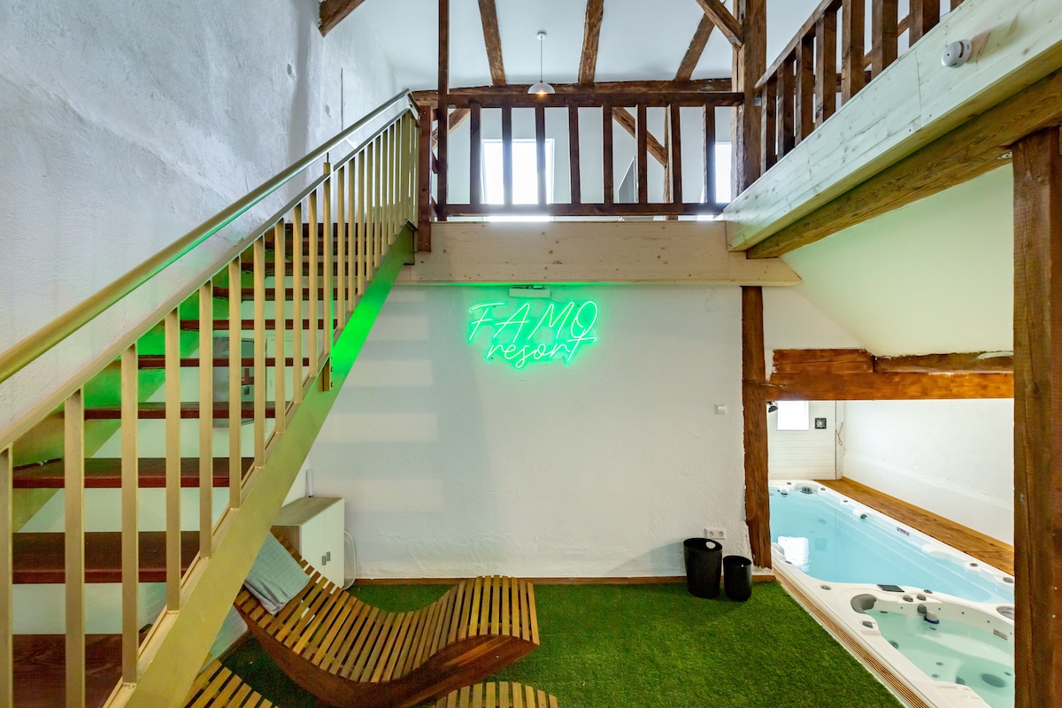 รู้สึกเหมือนอยู่ที่บ้านในบ้านไร่เพื่อสุขภาพของเราด้วยประสบการณ์สปาที่น่าจดจำในความเป็นส่วนตัวที่สมบูรณ์แบบ ผ่อนคลายจากความเครียดในชีวิตประจำวันและเพลิดเพลินไปกับคนที่คุณรัก เรายินดีต้อนรับคุณสู่ FAMO RESORT อย่างอบอุ่น → Swimspa พร้อมระบบทวนกระแส (22 องศาเซลเซียส) → อ่างน้ำวน (38 °-40° C) → Hamam (ไม่มีไอน้ำ) → ซาวน่า → WiFi อุปกรณ์→ ออกกำลังกาย สมาร์ททีวี→ขนาด 86 นิ้วและเน็ตฟลิกซ์ → กาแฟ NESPRESSO ระบบ→ กรองน้ำออสโมซิส "บ้านหลังนี้ยอดเยี่ยมอย่างบอกไม่ถูก"