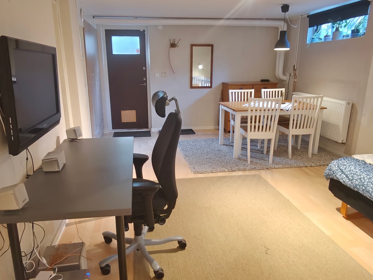 ห้องเล็กๆ มีห้องครัวที่เรียบง่าย พื้นที่รับประทานอาหารและเตียงในห้องเดียวกัน รวมถึงห้องน้ำและห้องโถง บ้านส่วนตัวที่มีทางเข้าจากบันไดและไม่ต้องใช้ร่วมกับใคร ตั้งอยู่ใจกลางย่านวัฒนธรรมและใกล้กับทะเลสาบแมลาร์เรน การเข้าถึงเฟอร์นิเจอร์ในสวนเดิน 7 นาทีจากสถานีและใจกลางเมือง 85 กม. จากสตอกโฮล์มที่คุณเดินทางโดยรถไฟได้ง่ายที่สุดใน 48 นาทีด้วย Mälartåg ที่พักเหมาะสำหรับค้างคืนและทำอาหารง่ายๆ