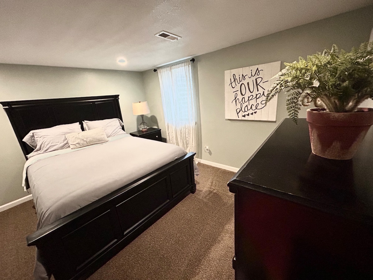 เตียงคิงไซส์ 1 เตียงที่นอนเป่าลมคู่ 1 หลัง (plz req rollaway) เครื่องซักผ้า/เครื่องอบผ้าสำหรับการใช้งานส่วนตัวของคุณ Wi-Fi ไฟเบอร์เร็ว กันยายนล้อมรั้วพื้นที่สนามหลังบ้านพร้อมทางเข้าส่วนตัวเข้าไปในพื้นที่ชั้นใต้ดินของคุณซึ่งตั้งอยู่รอบๆด้านหลังของบ้านหลัก ที่จอดรถในที่พัก สวนสุนัขเส้นทางเดิน ร้านอาหารใกล้ๆใกล้กับปั๊มน้ำมันและแหล่งช็อปปิ้ง เรายังมีแผงโซลาร์เซลล์ที่ช่วยสำรองความร้อน/อากาศและรีฟิกหากไฟฟ้าดับ!!!