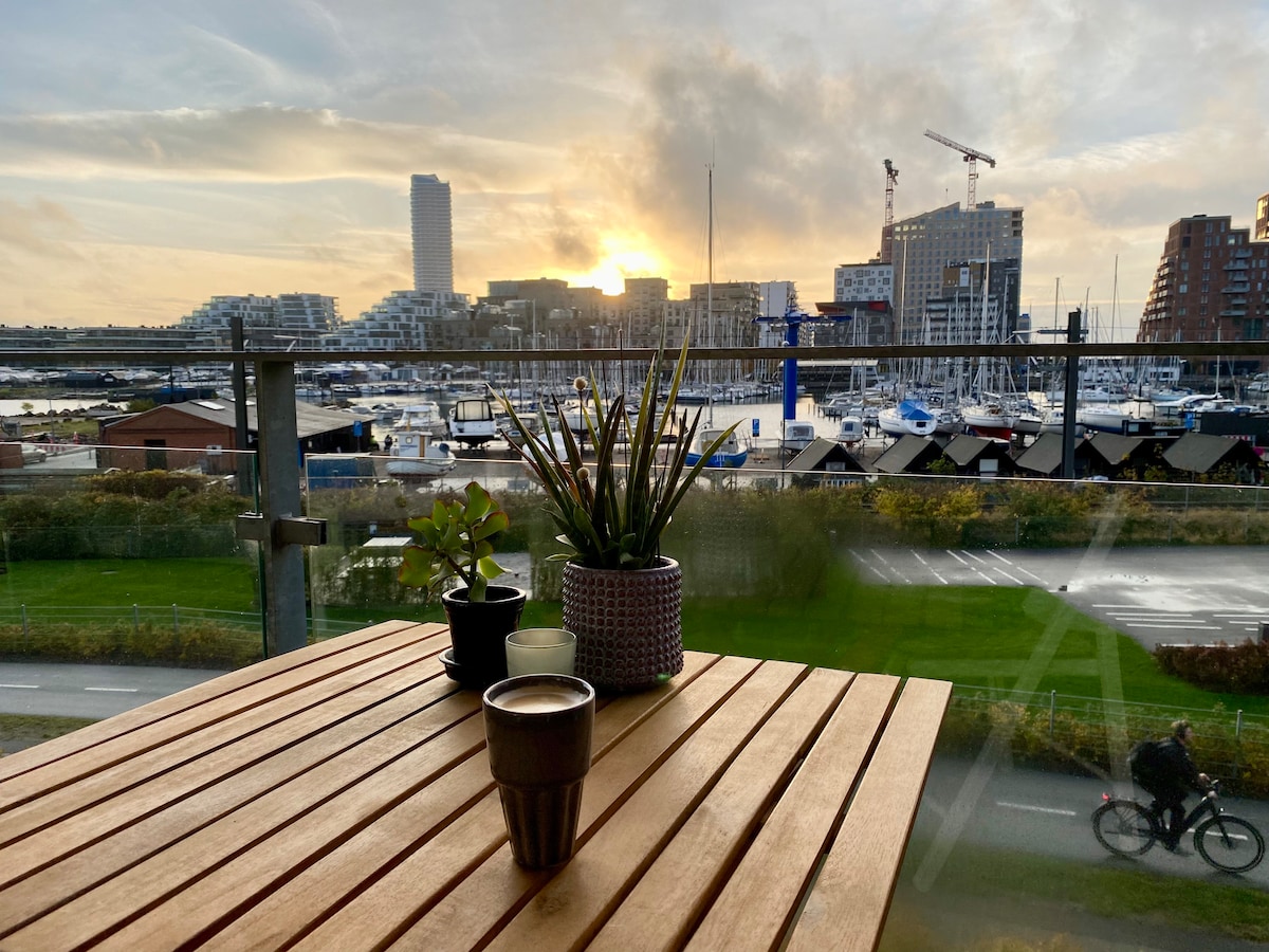 อพาร์ทเมนท์หรูบนเกาะออร์ฮุสที่มีวิวที่ไม่มีใครเทียบได้ของท่าเรือ ท่าเรือออร์ฮุส และใจกลางเมืองออร์ฮุส - วิวที่สวยงามตลอดทั้งปีและตลอด 24 ชั่วโมง อพาร์ทเมนท์ขนาด 47 ตร.ม. ตั้งอยู่บนชั้น 3 (ชั้นบนสุด) และมีห้องครัว ห้องน้ำ และห้องนอน นอกจากนี้ ยังมีระเบียงที่มีหลังคาและหันหน้าไปทางทิศใต้ขนาดใหญ่ ซึ่งสามารถติดตามกิจกรรมในฮาร์เนบาเดตได้