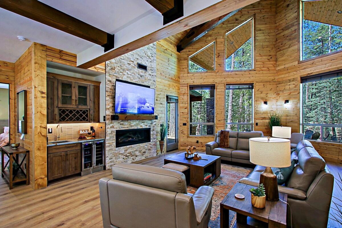 In the Pines - Two Outdoor Patios - Gas BBQ - Prescott National Forrest - Air Conditioning and Heat! ห้องครัวมีอุปกรณ์ครบครัน - เตาผิง - สมาร์ททีวีในห้องนั่งเล่นและห้องนอน - ปรับโฉมใหม่! 2 ห้องนอน - - ห้องนอนขนาดควีนไซส์พร้อมห้องน้ำในตัวและสมาร์ททีวีขนาด 43'' - (2) ห้องพักเตียงคู่พร้อมสมาร์ททีวี ห้องน้ำเต็มรูปแบบ 2 ห้อง มีฝักบัวและอ่างอาบน้ำ ห้องนั่งเล่น - ทีวีอัจฉริยะขนาดใหญ่และสตรีมมิ่ง - โซฟายาวออกไปที่เตียงคิงไซส์ ดาดฟ้ากลางแจ้ง 2 ชั้นพร้อมเตาย่างแก๊สและเฟอร์นิเจอร์นอกชาน Wi-Fi เร็ว!