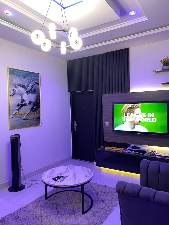 ห้องนั่งเล่นพร้อมสำหรับการพักผ่อนด้วยสมาร์ททีวี เครื่องเล่นเพลง และลำโพงบลูทูธติดเพดาน เหมาะสำหรับการชมภาพยนตร์หรือผ่อนคลายหลังจากวันที่วุ่นวาย