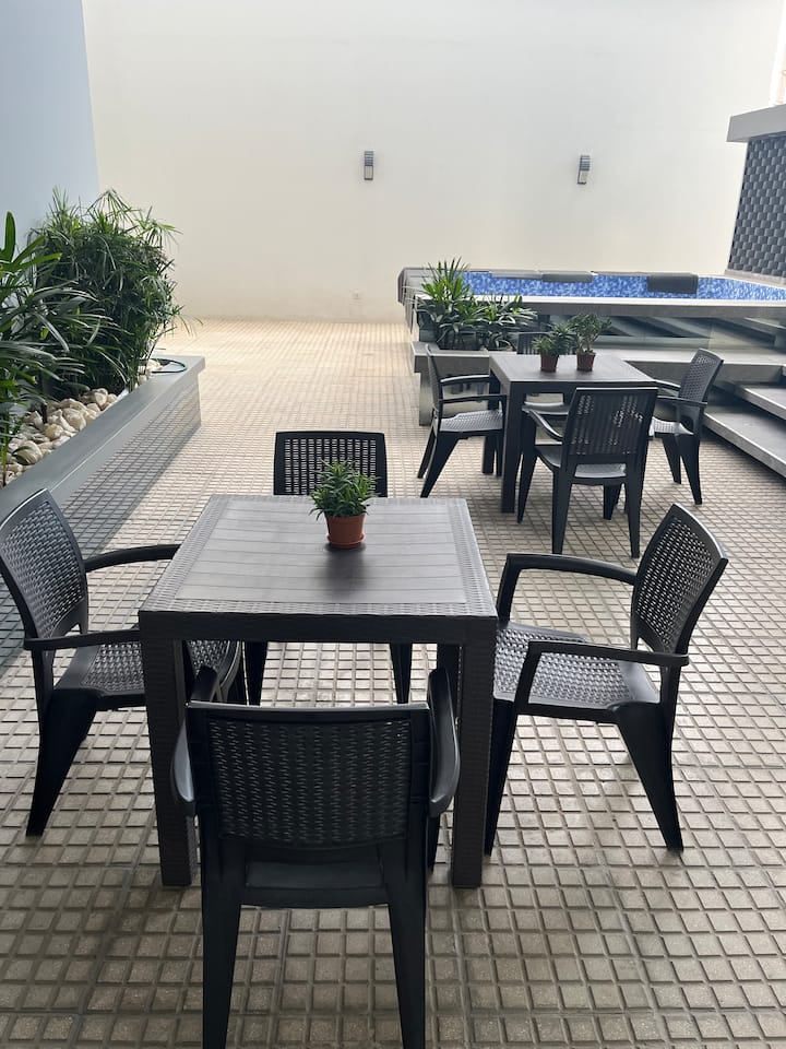 นี่เป็นหนึ่งในที่พักไม่กี่แห่งของย่านนี้ที่มีสระว่ายน้ำ