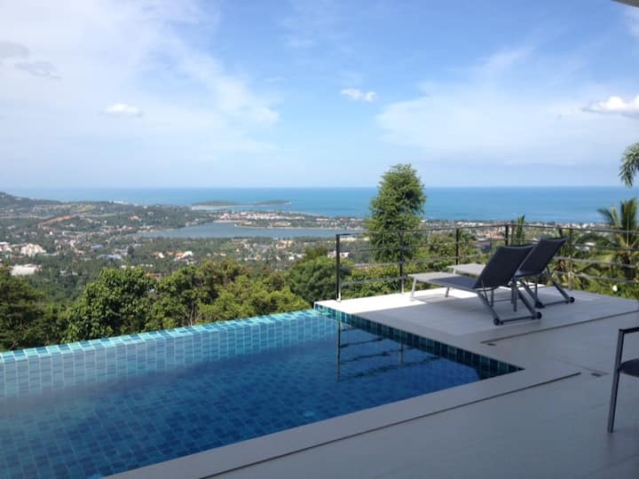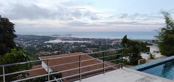 วิวทะเลที่ยอดเยี่ยมจากบ้านพักบนภูเขาเกาะสมุย