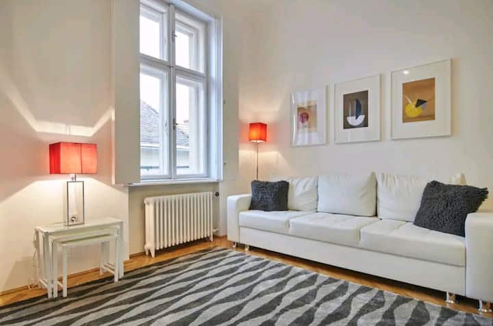 อพาร์ทเมนท์กลางเมืองและกว้างขวาง + ระเบียง