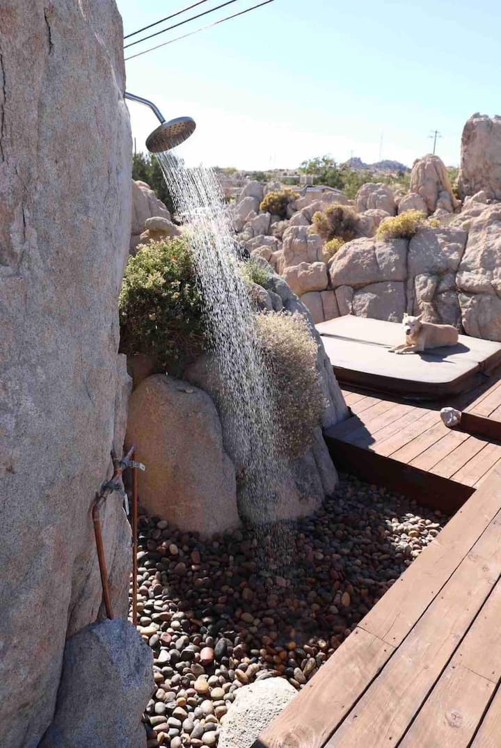 สวนหลังบ้านส่วนตัวที่มีรั้วล้อมรอบมีพื้นที่รับประทานอาหารกลางแจ้งที่ร่มรื่นสำหรับมื้ออาหารกับคนสำคัญของคุณ คุณมีเตาผิงที่อบอุ่นบนดาดฟ้าที่มองเห็นพระอาทิตย์ตกในทะเลทรายที่สวยงาม ใช้ฝักบัวอาบน้ำกลางแจ้งจุ่มปลายเท้าลงในสระว่ายน้ำและดื่มด่ำกับความอบอุ่นของอ่างน้ำร้อน