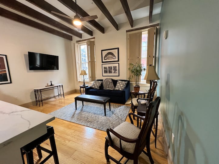 ห้องพักเก๋ไก๋และกว้างขวางแห่งนี้ตั้งอยู่ริมถนน Camp St. ที่มีชื่อเสียงมีห้องนอนที่ตกแต่งอย่างดี 2 ห้องแต่ละห้องมีเตียงที่สะดวกสบายและที่เก็บของกว้างขวาง ห้องน้ำสองห้องเพรียวบางและทันสมัยให้ทั้งความสะดวกสบายและความหรูหรา พื้นที่นั่งเล่นได้รับการออกแบบมาเพื่อการพักผ่อนพร้อมโซฟาแสนสบายสมาร์ททีวีเพื่อความบันเทิงและหน้าต่างบานใหญ่ที่เต็มไปด้วยแสงธรรมชาติ